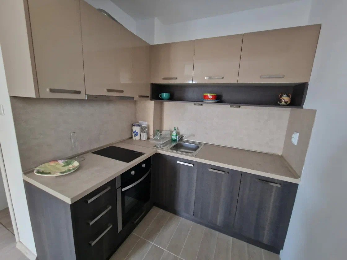 Кухнята е висококачествена, оборудвана с бар-плот и бар-плакати стола, керамичен плот, електрическа печка, хладилник с фризерна част, мивка и абсорбатор.