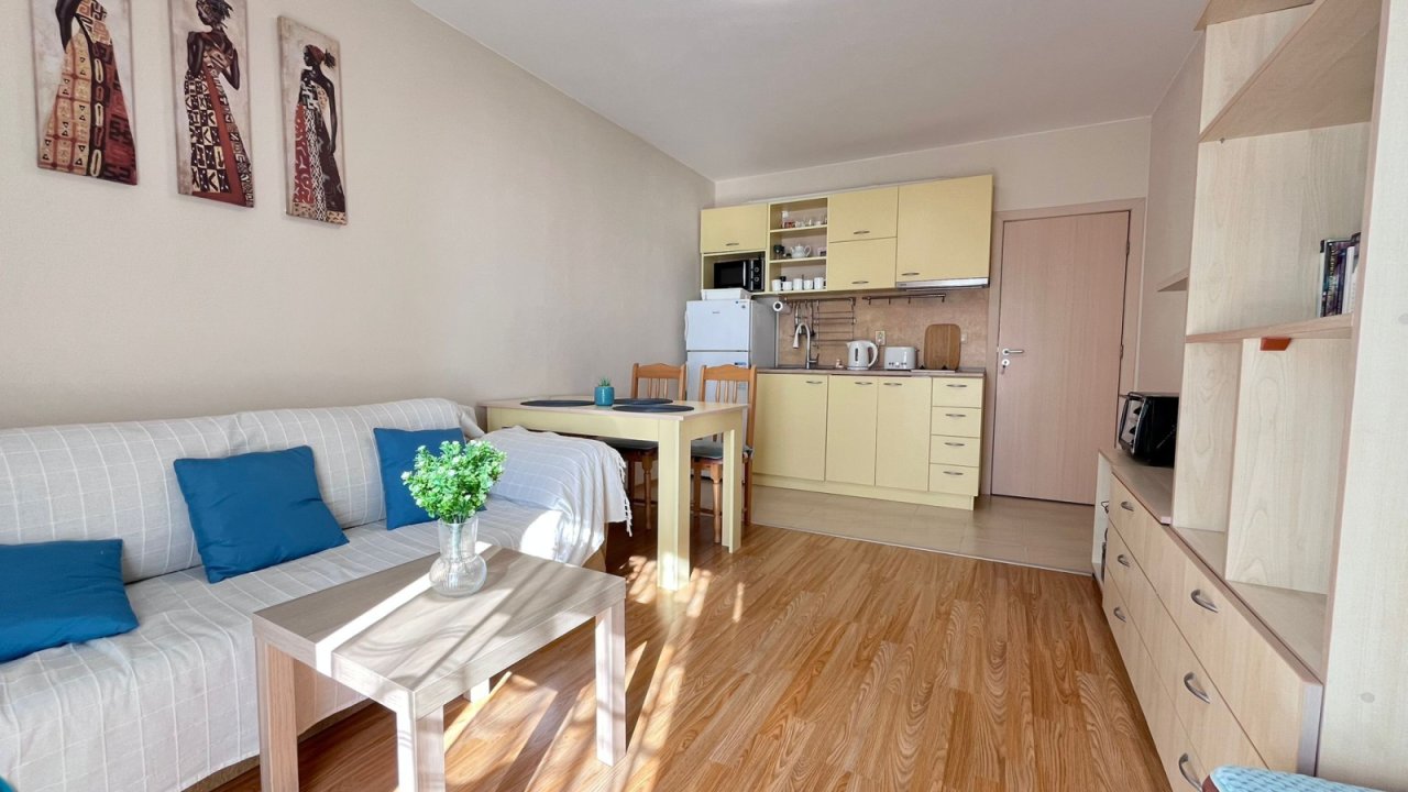 Апартаментът е обзаведен и готов за нанасяне – остава само да сбъднете мечтите си. Тук ще намерите комфорт, стил и усещането за вечен празник, само на няколко крачки от морските вълни. Това не е просто имот – това е мястото на вашия покой и вдъхновение.