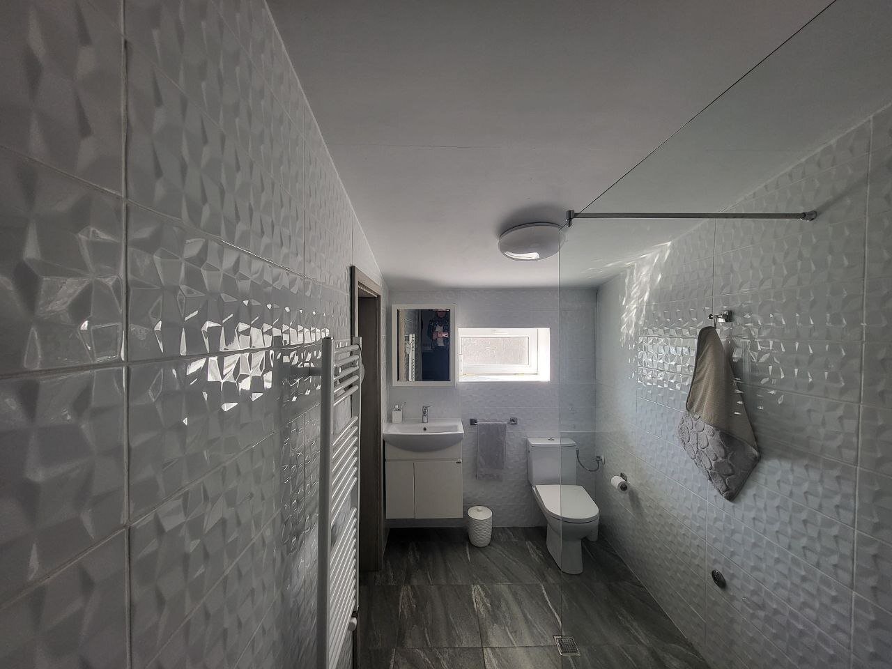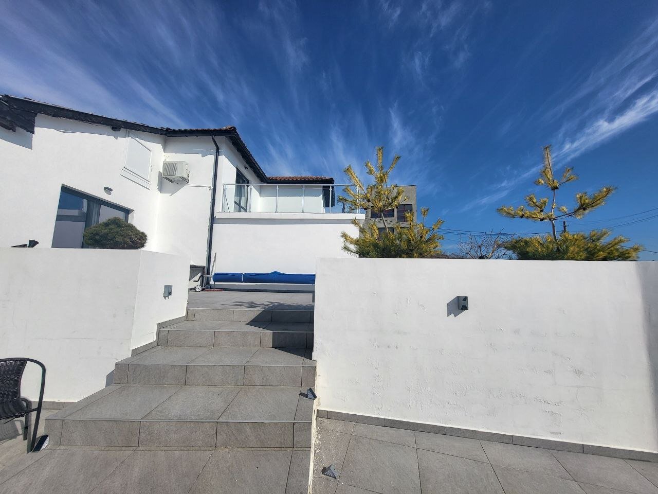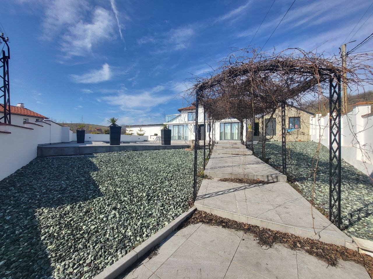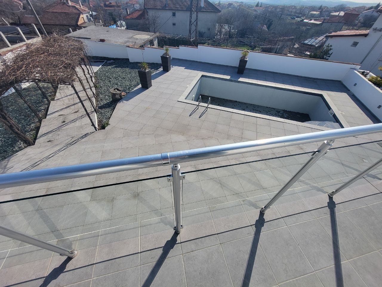 Имотът се намира на тих и спокоен улица с постоянно живеещи съседи. В близост има хранителни магазини, детска площадка, футболно игрище и др. Имотът разполага с обща застроена площ от 238 кв.м и двор от 1030 кв.м. Разпределението е следното: голяма дневна, просторна кухня с трапезария, 4 спални, 3 бани, офис, голяма тераса, отоплително помещение, две тавански стаи, двор с басейн и отделна пристройка за материали, инструменти и други неща за поддръжката на басейна и зелени площи.