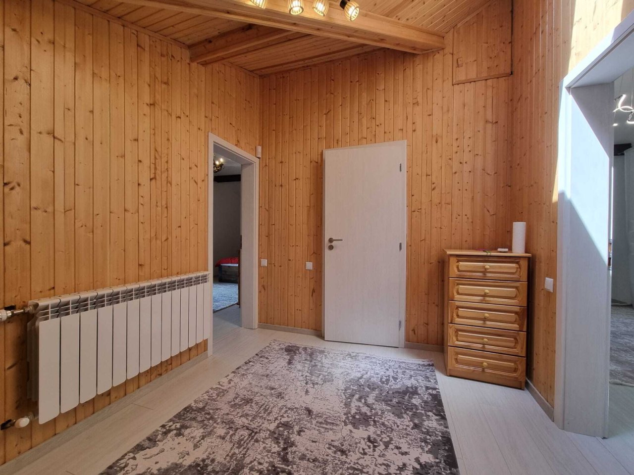 Къщата се намира в подножието на планината, с прекрасен панорамен изглед. Площта на къщата е 162 кв.м., без мазе. На първия етаж са разположени: входно антре, дневна с електричен камин, кухня, трапезария с достъп до голяма тераса, спалня и баня с душ. На втория етаж: коридор, 2 спални, едната от които има дрешник и тераса, и баня с душ. В мазето се намира отоплителна инсталация и нов котел. Къщата е в отлично състояние, оборудвана с нови мебели, уреди и климатик и е напълно готова за комфортен престой! Всяка стая е оборудвана с радиатор. Интернет, телевизия, охранителна система и видеонаблюдение са монтирани. Водата и електричеството са централизирани.