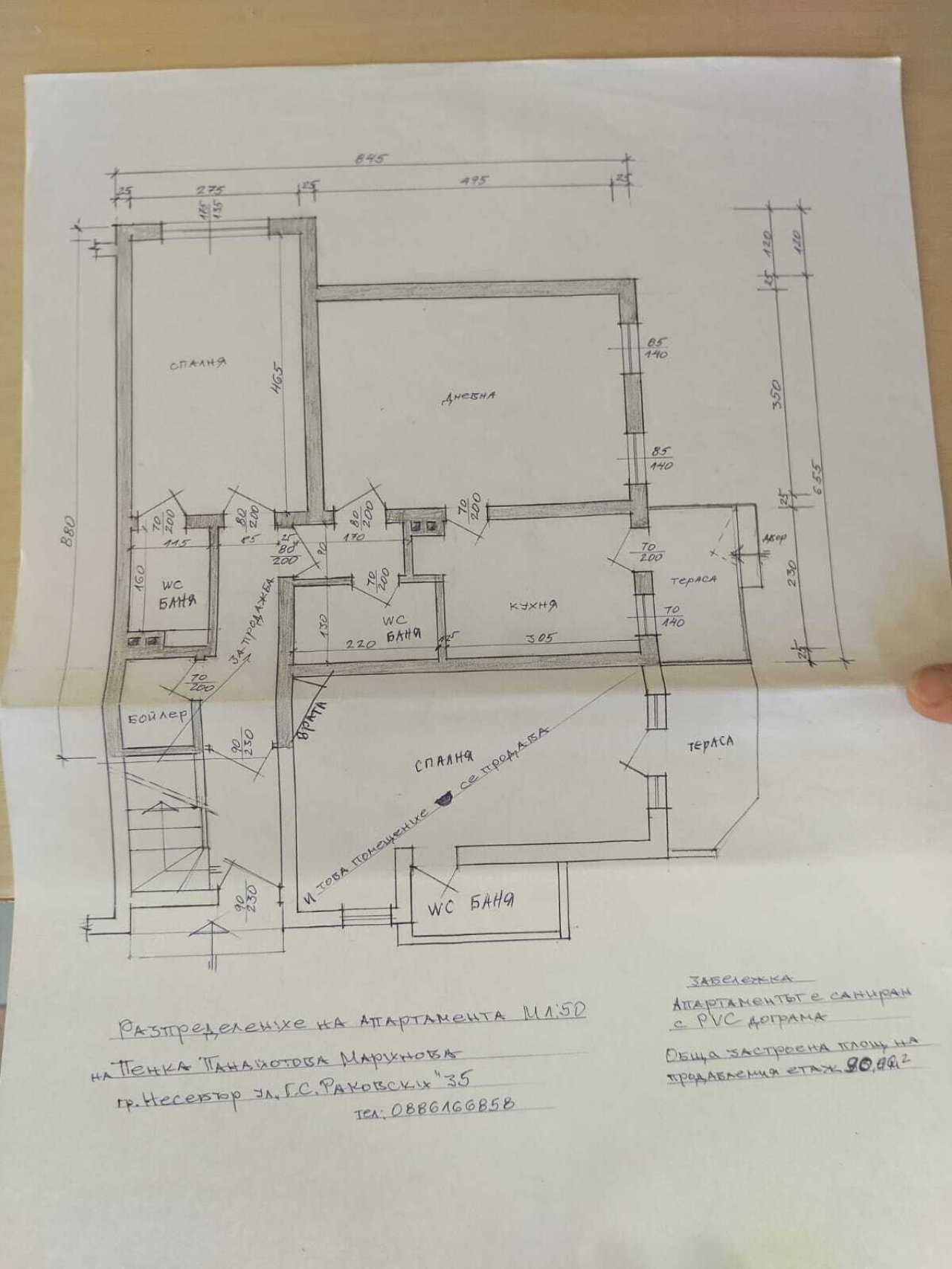 Обща площ (без балконите): 90 кв.м