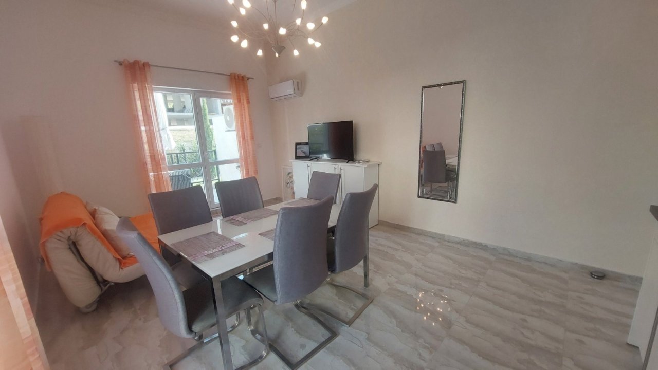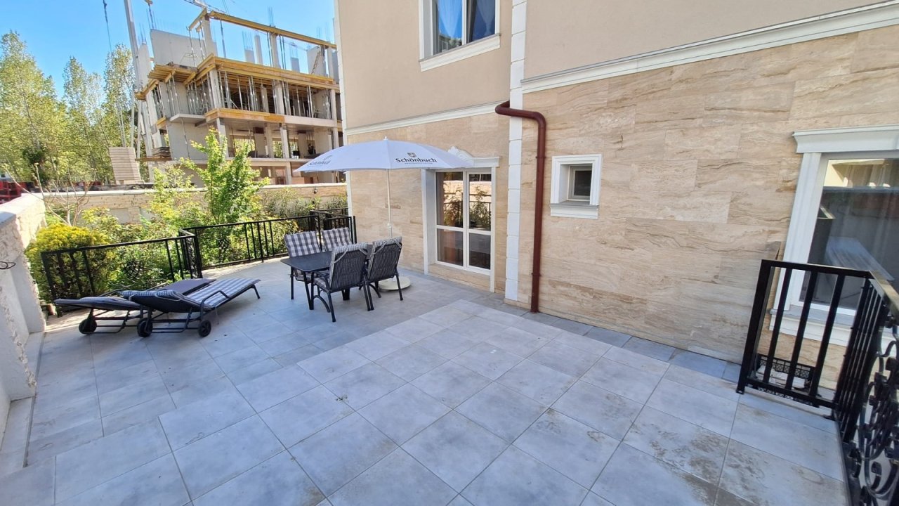 Апартаментът има площ от 110 кв.м и се намира на първи етаж (партер). Той е напълно обзаведен с луксозни мебели и висококачествени материали и е готов за нанасяне. Подходящ е както за почивка, така и за постоянно живеене или като инвестиция под формата на отдаване под наем.