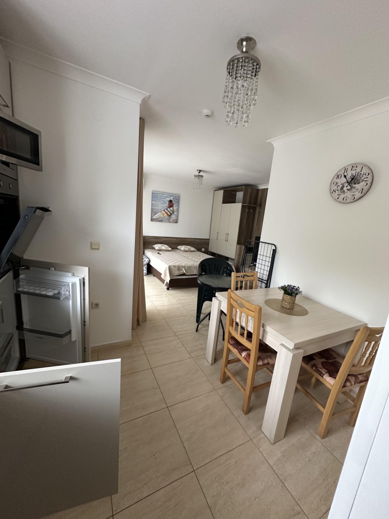 Студиото разполага с практично разпределение на пространството: дневна и спалня с вграден кухненски бокс, както и модерен баня. Благодарение на стилното обзавеждане и отличното местоположение, имотът е идеален както за лично ползване, така и като доходна инвестиция под наем.