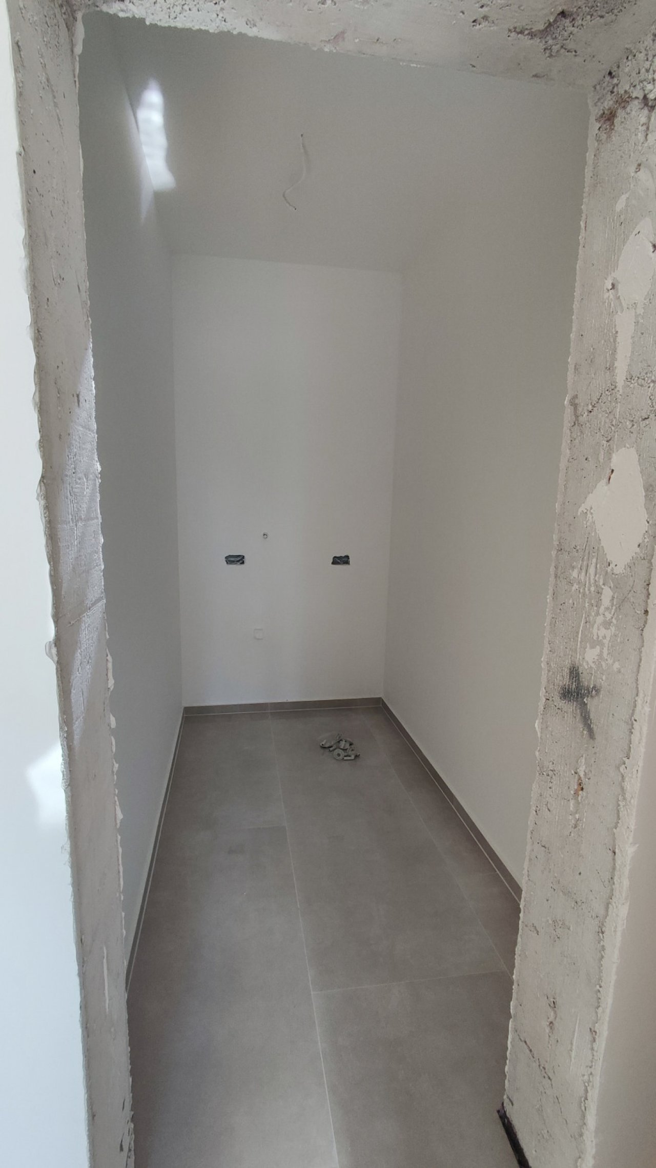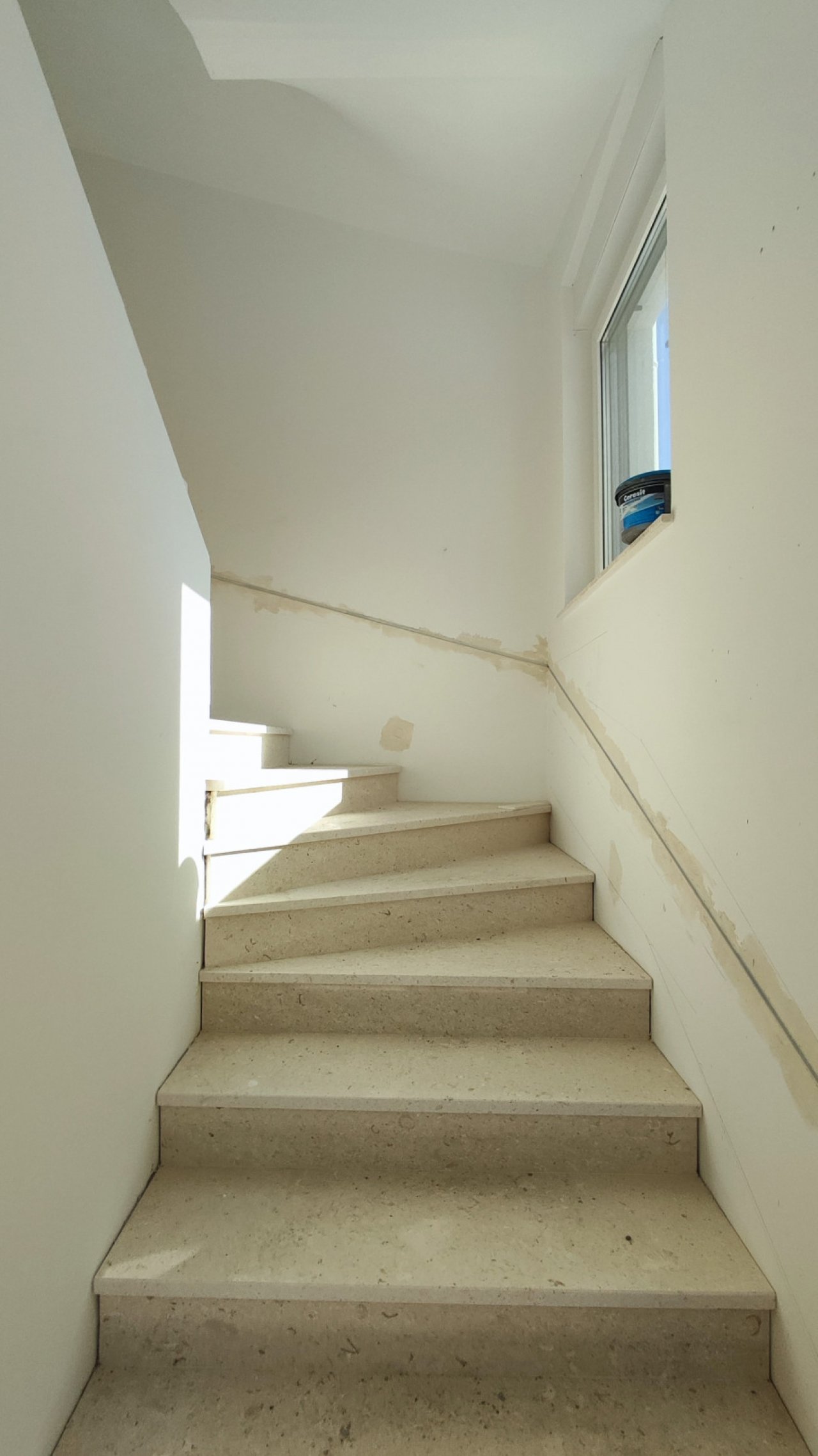 Вътрешно стълбище води до първия етаж, където има две спални, всяка със собствена баня и достъп до обща тераса. Тази концепция осигурява максимална поверителност, независимо дали за членове на семейството или гости, като същевременно позволява много пространство и простор. На втория етаж има трета спалня, отново с баня и достъп до самостоятелна тераса с размери 17,31 м². И от тази тераса се открива красива гледка към морето и околната природа - спокойни зелени пояси и средиземноморски къщи, които създават атмосфера, типична за Далмация.