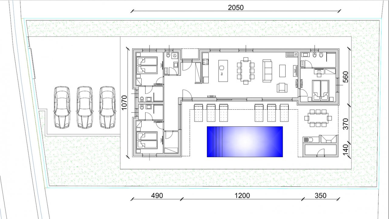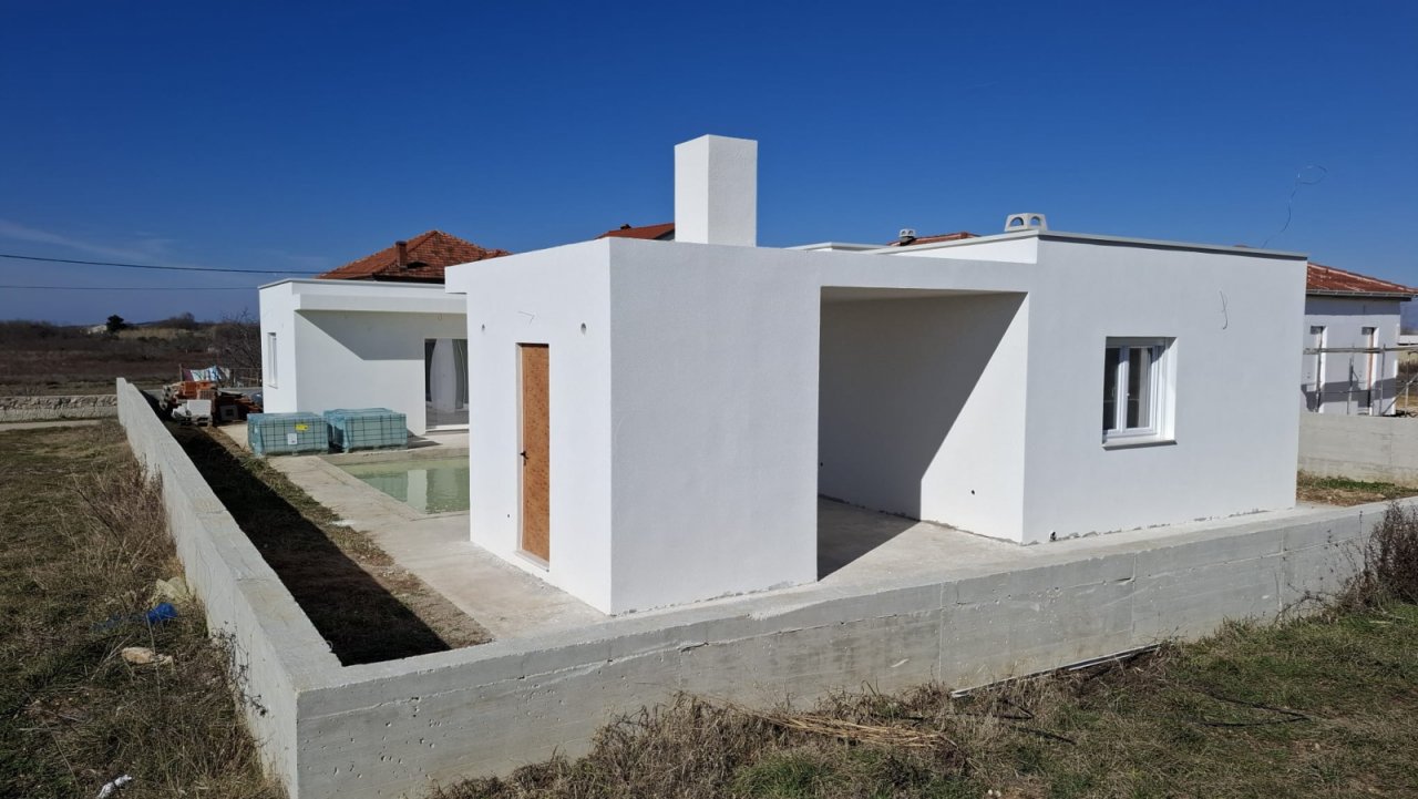 Модерният интериорен дизайн се основава на щедро жилищно пространство с напълно оборудвана кухня, трапезария и светла всекидневна, от която се открива красива гледка към терасата и басейна. Три просторни спални със самостоятелни бани осигуряват максимален комфорт за семейството и гостите, допълнени от отделна тоалетна и практичен килер. Цялата къща е климатизирана, така че никой сезон няма да ви изненада.…