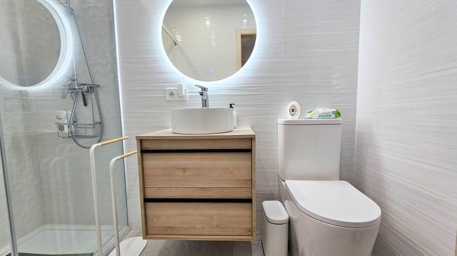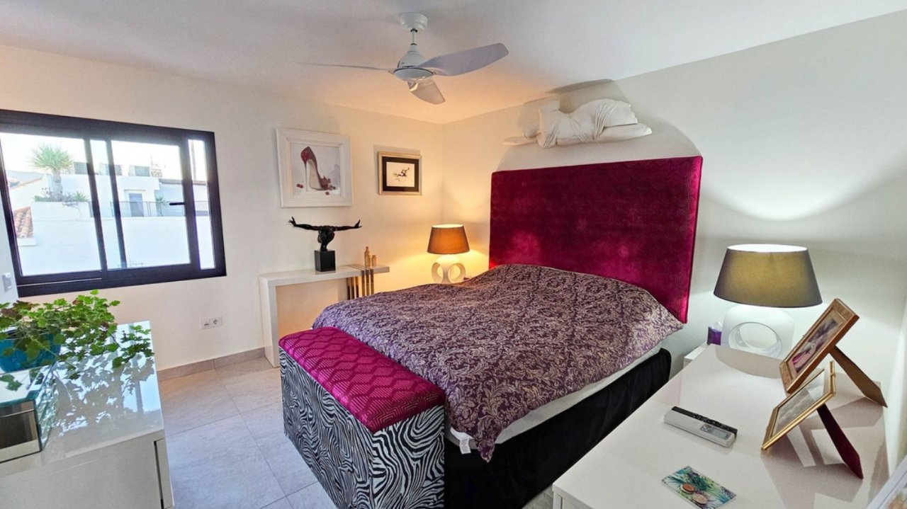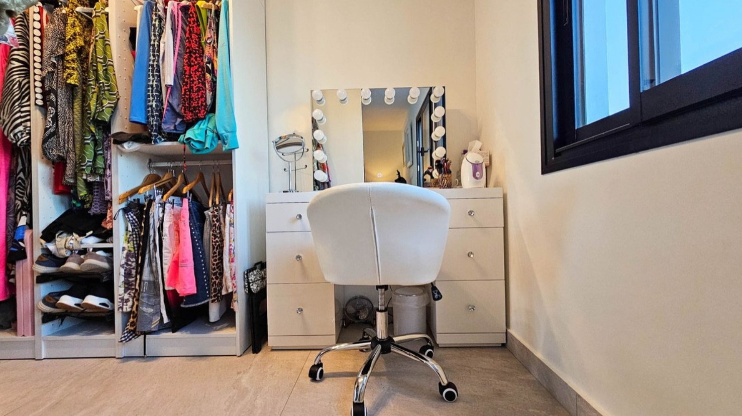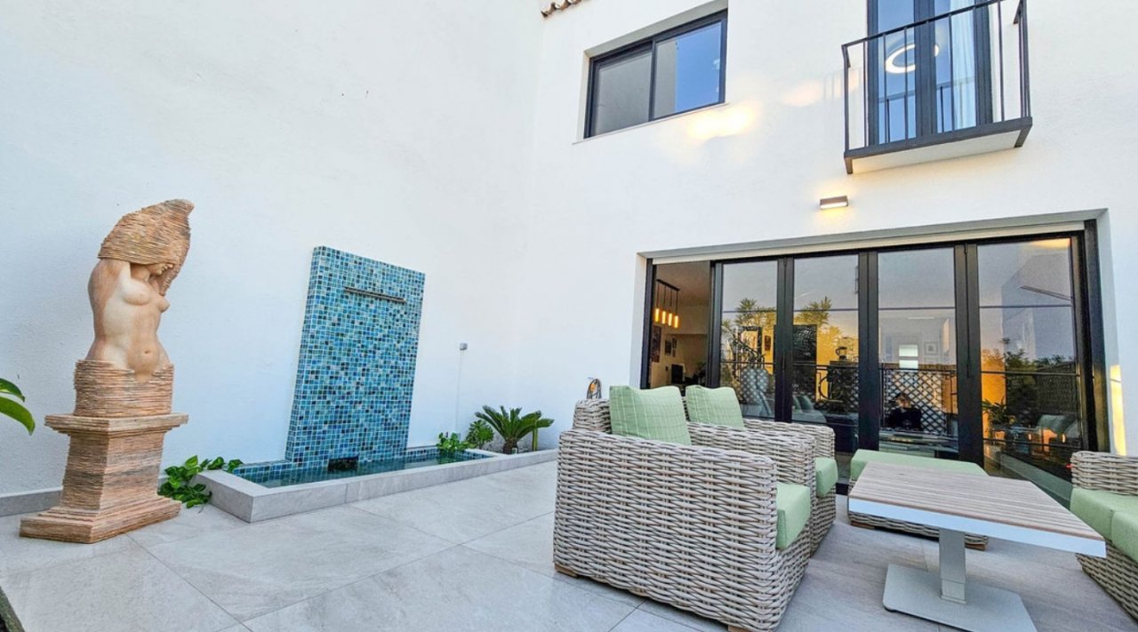 Интериорът ще ви очарова още с влизането: красиви подове с плочки, луксозни бани, чисто нова кухня с остров, модерни уреди и гениално проектирано пространство за готвене и срещи. Отворената всекидневна се отваря изцяло към основната тераса, създавайки изпълнена със светлина връзка между интериора и екстериора. Спалните на първия етаж предлагат две общи и една самостоятелна баня, докато главният апартамент на горния етаж има собствена гардеробна, баня и достъп до тераса на покрива с панорамна гледка към морето.