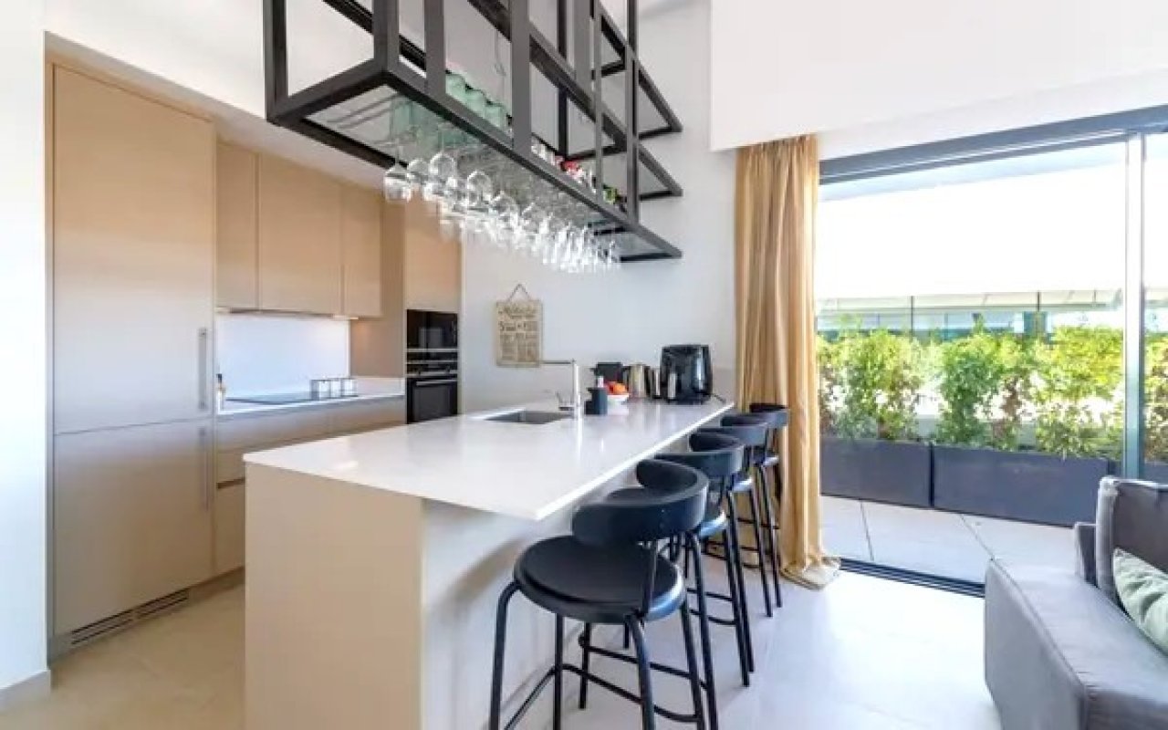 На популярния булевард „Нова Златна миля“ в Естепона се намира изключителен пентхаус, който съчетава модерен дизайн, обмислен интериор и луксозни удобства. Апартаментът с две спални и две бани се намира в затворен комплекс с уелнес център, открит и закрит плувен басейн, фитнес зала и повече от едно паркомясто в подземния гараж. Но истинското му съкровище е скрито на покрива – частна тераса със солариум и собствен басейн с гледка към морето, планините и околната природа.