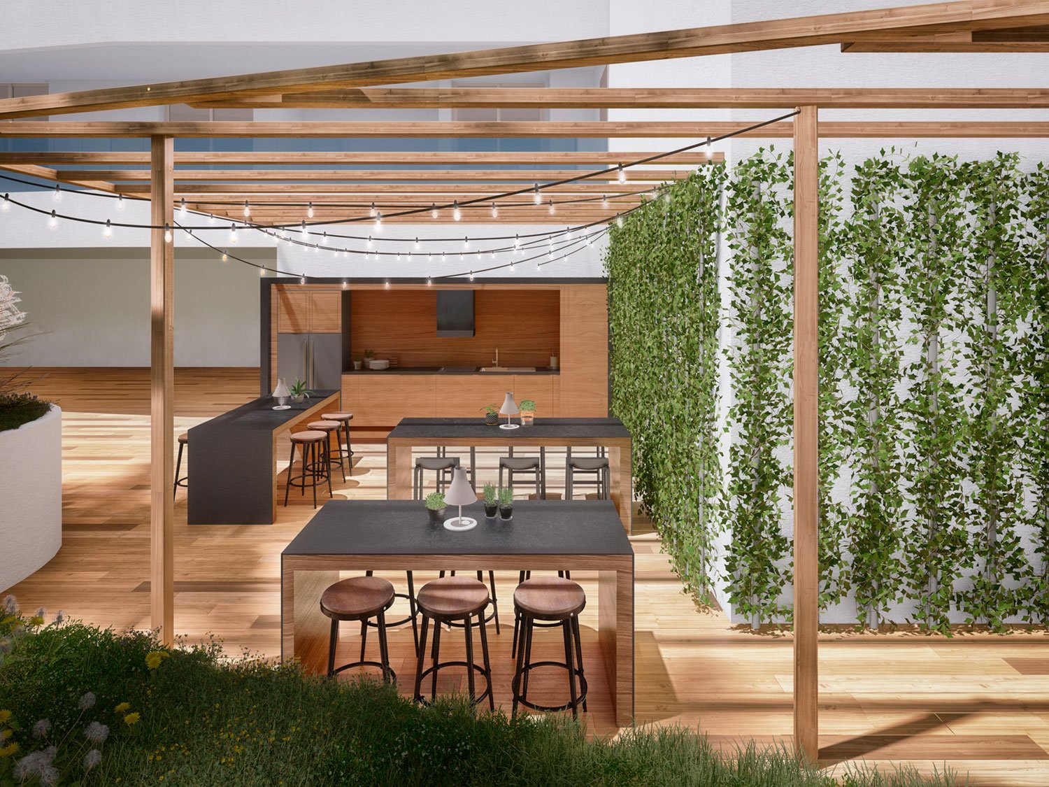 Общите части насърчават активен и социален живот, обширните градини осигуряват тих кът за релакс, а споделената тераса с басейна е естествено място за срещи. Напълно оборудвана фитнес зала ви позволява да се грижите за вашата физическа форма, без да се налага да търсите външно оборудване, а споделен гараж гарантира безопасността на вашите превозни средства. Съвременните технологии, включително зарядни устройства за електрически автомобили, подчертават акцента върху устойчивостта и комфорта в ежедневието.