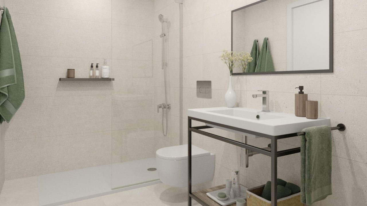 Интериорът е проектиран с мисъл за модерен начин на живот и практичност, като разпределенията включват апартаменти с една до три спални и една до две бани, за да отговарят на различни семейни и инвестиционни нужди. Висококачествените плочки осигуряват лесна поддръжка и непреходен вид, вградените уреди в кухнята позволяват незабавно нанасяне без притеснения, а вградените гардероби осигуряват достатъчно място за съхранение, за да се поддържа ред и спокойна атмосфера у дома. Всеки детайл е обмислен, за да се гарантира, че интериорът се усеща уютно, естетично и функционално едновременно.