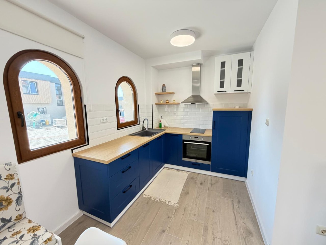 Die integrierte Küchenzeile ist funktional gestaltet und ideal für den täglichen Gebrauch geeignet.