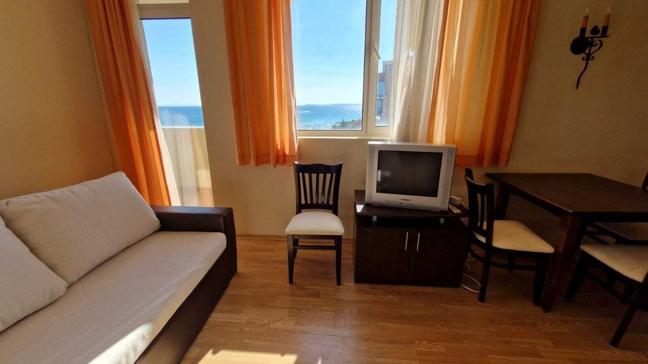 Wir bieten eine helle Zwei-Zimmer-Wohnung mit einem unglaublichen Panoramablick auf das Meer im wunderbaren Komplex „Atrium Beach“, der sich in erster Reihe im Ferienort Elenite befindet, zum Verkauf an.