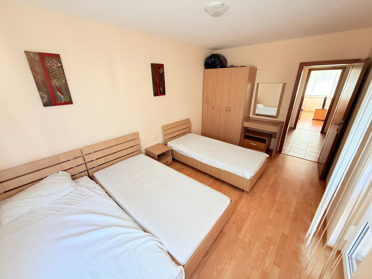 Die Dreizimmerwohnung befindet sich im geschlossenen Wohnkomplex Nessebar Fort Club in Sonnenstrand, direkt gegenüber vom Action Aquapark und nur ca. 10–15 Gehminuten vom feinsandigen Strand entfernt.