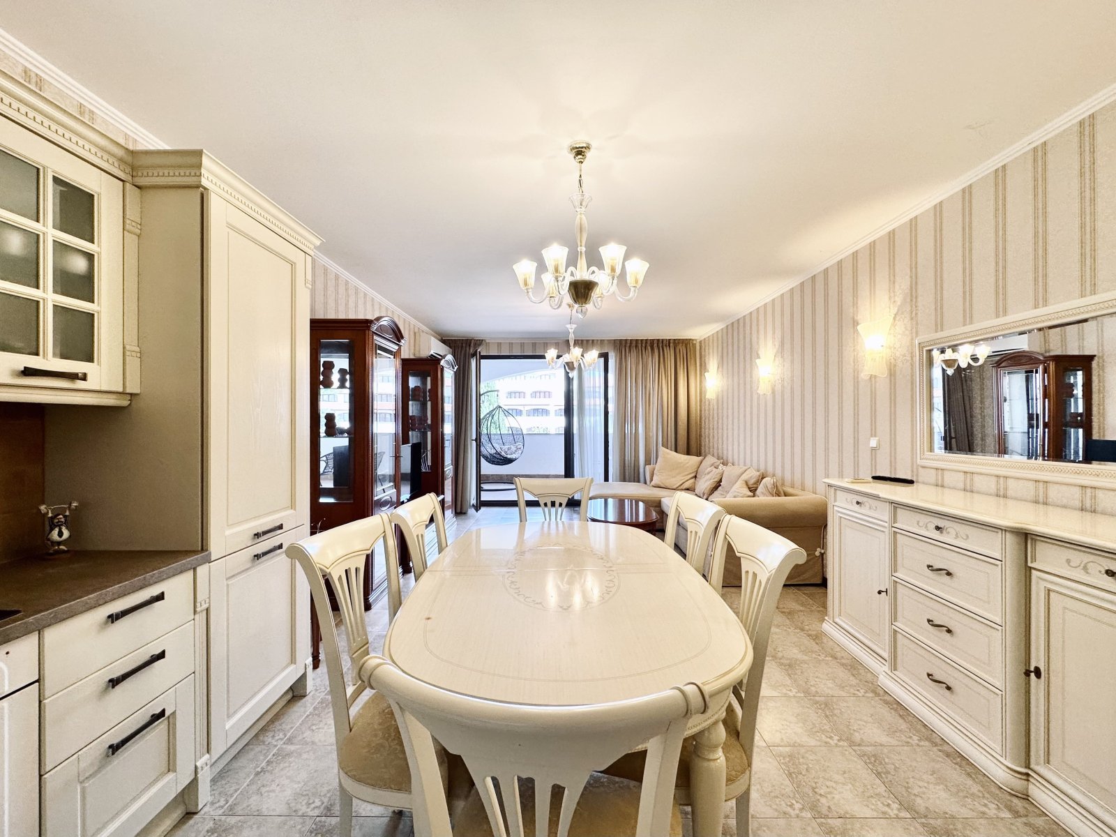 Wir bieten Ihnen eine großzügig geschnittene 3-Zimmer-Wohnung mit extra Ankleidezimmer im exklusiven Casa Real Komplex in Sveti Vlas. Die Wohnung befindet sich in der 3. Etage eines modernen Gebäudes mit Fahrstuhl und überzeugt durch helles, mediterranes Ambiente sowie traumhaften Meer- und Poolblick.