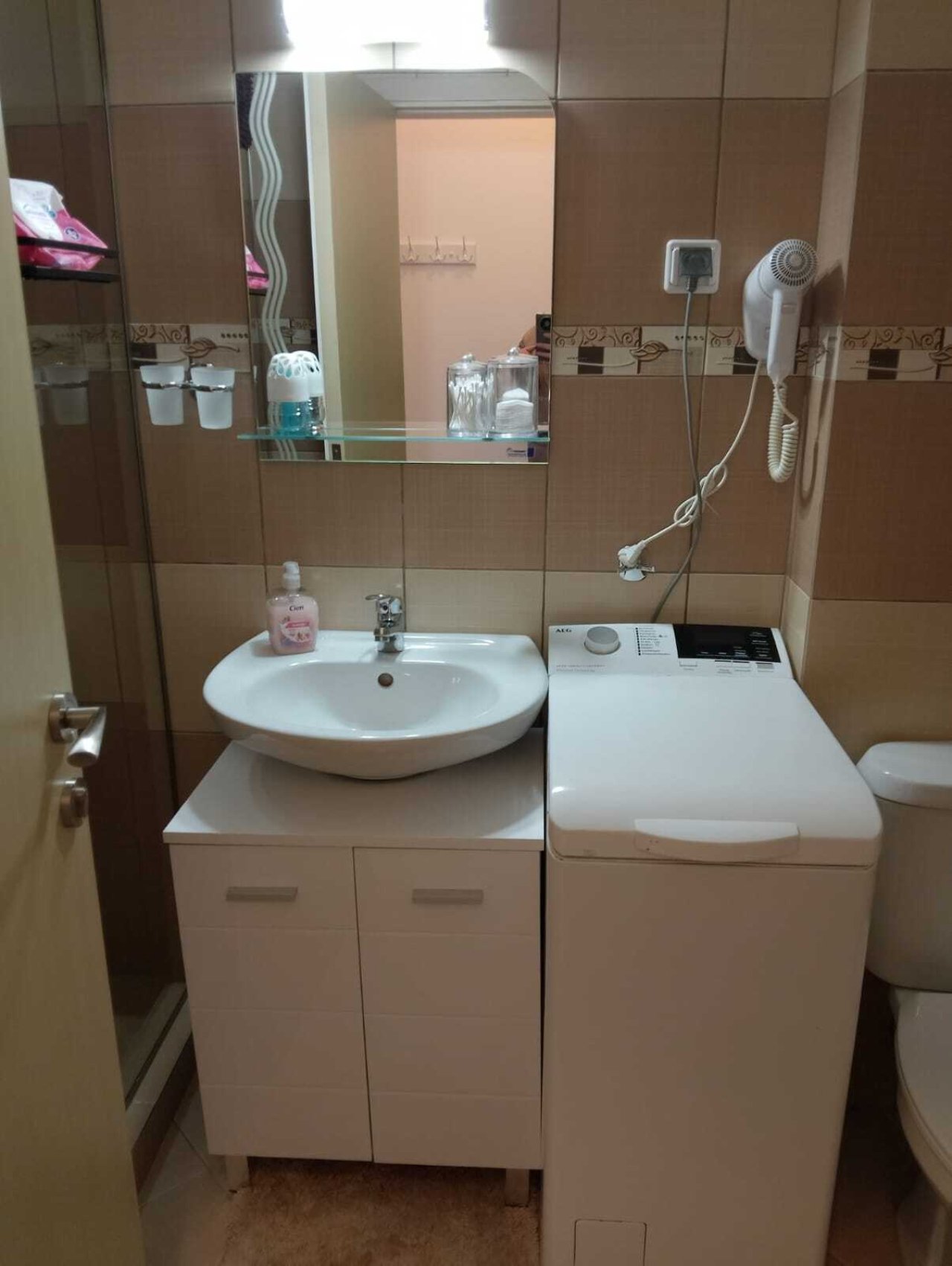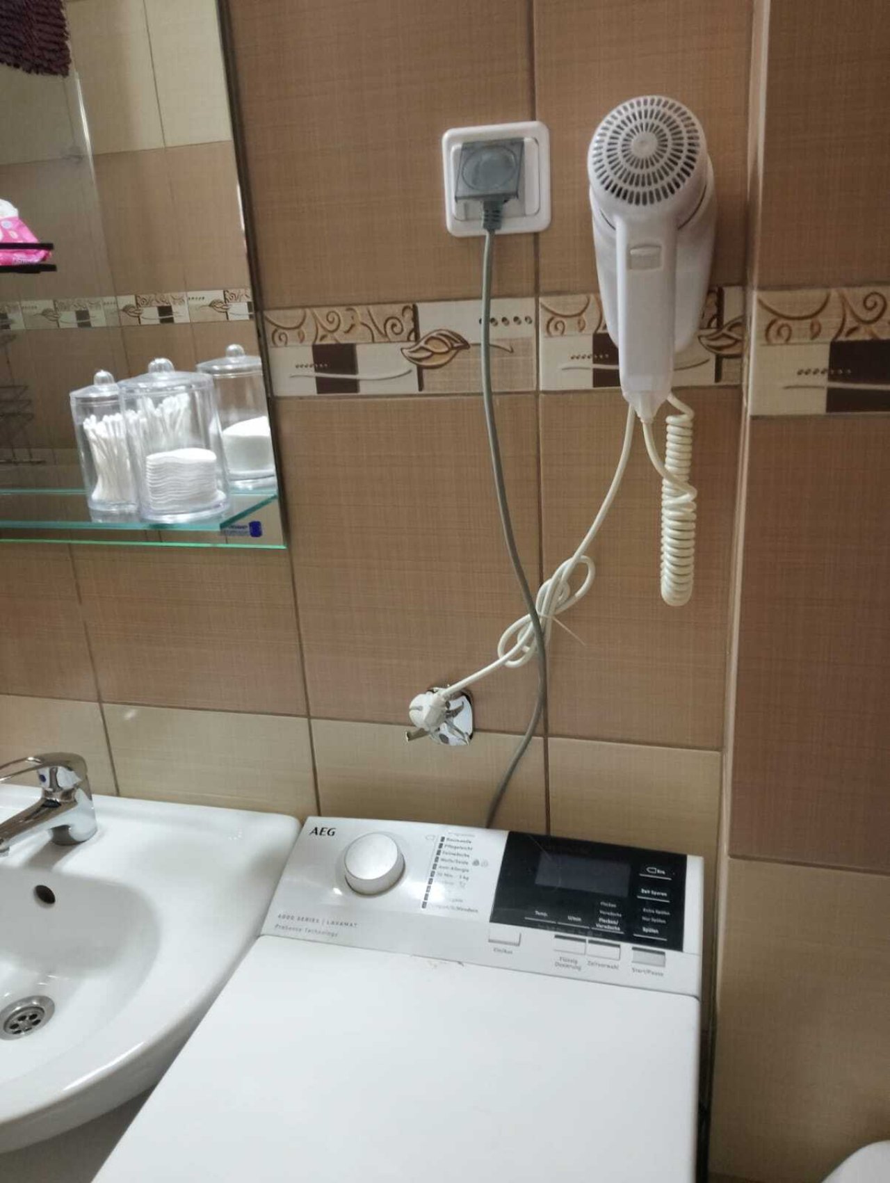 Badezimmer, als Duschbad ausgelegt mit Waschmaschine.