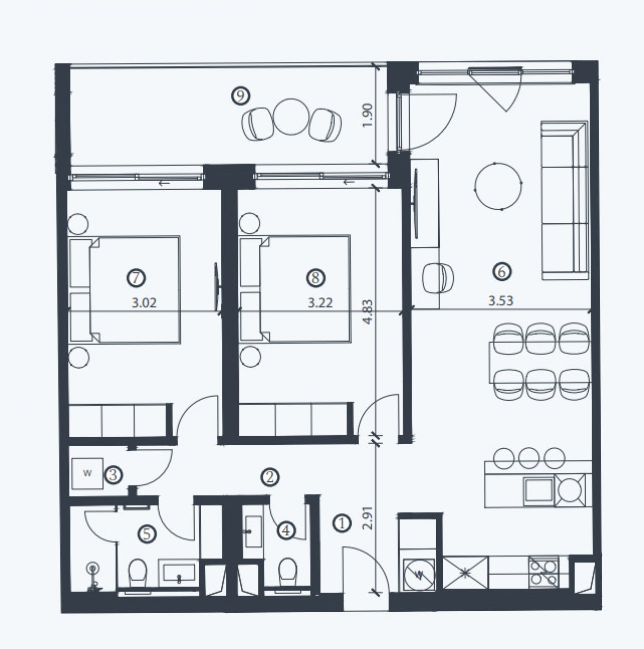 Die Wohnfläche beträgt 91,8 m², inklusive einer großzügigen Terrasse von 11,20 m² mit atemberaubendem Blick auf die Adria. Die moderne und geschmackvolle Einrichtung unterstreicht die hohe Qualität und den Stil der gesamten Wohnung.