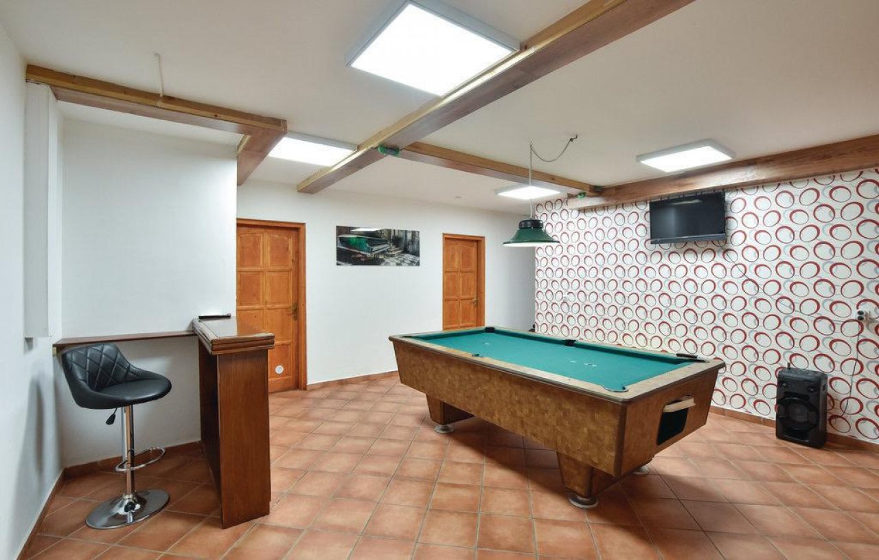 Im Erdgeschoss befinden sich ein großzügiges Wohnzimmer mit angrenzender, maßgefertigter Küche und ein elegantes Esszimmer. Vom Wohnbereich gelangt man direkt auf eine große Terrasse mit freiem Meerblick, die zum Entspannen im Alltag und zum Genießen des Sonnenuntergangs einlädt. Ebenfalls im Erdgeschoss befindet sich eine traditionelle dalmatinische Taverne mit überdachter Terrasse – ideal für gesellige Treffen und authentisches mediterranes Flair. Im Untergeschoss befindet sich ein Entspannungsbereich mit Billard und Sauna, der den gehobenen Charakter der gesamten Villa unterstreicht.
