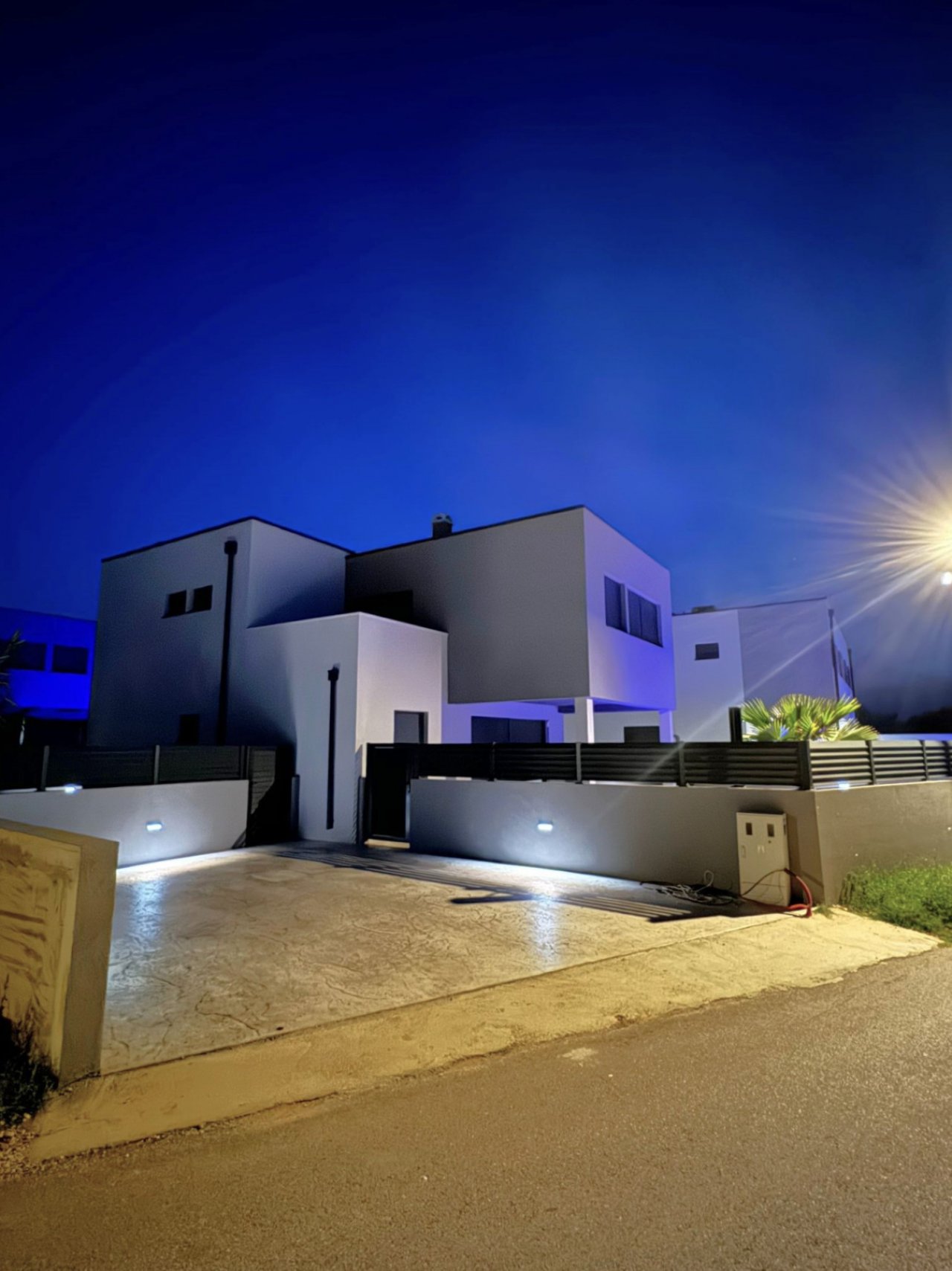 Das Anwesen befindet sich auf einem 523 m² großen Grundstück, wovon 323 m² ein angelegter Garten sind. Es umfasst einen Swimmingpool, einen Parkplatz, einen separaten Eingang und eine hochwertige Haustechnik. Das Haus ist mit Klimaanlagen, Sicherheitstüren, PVC-Fenstern und großen Glasfronten ausgestattet, die für viel Tageslicht und eine angenehme Verbindung zum Außenbereich sorgen.