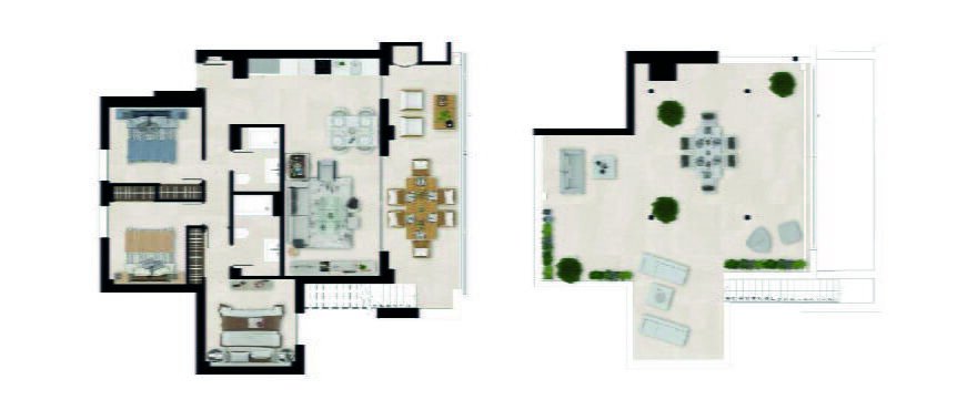 Dieses moderne Penthouse mit vier Schlafzimmern, zwei Bädern und einer Wohnfläche von 101,71 m² bietet höchsten Wohnkomfort und erstklassiges Wohnen. Die großzügige Terrasse (112,74 m²) bietet einen atemberaubenden Panoramablick auf die umliegende Landschaft, den Golfplatz und das Meer. Dank der Lage im obersten Stockwerk genießen Sie absolute Privatsphäre und ein exklusives Ambiente.