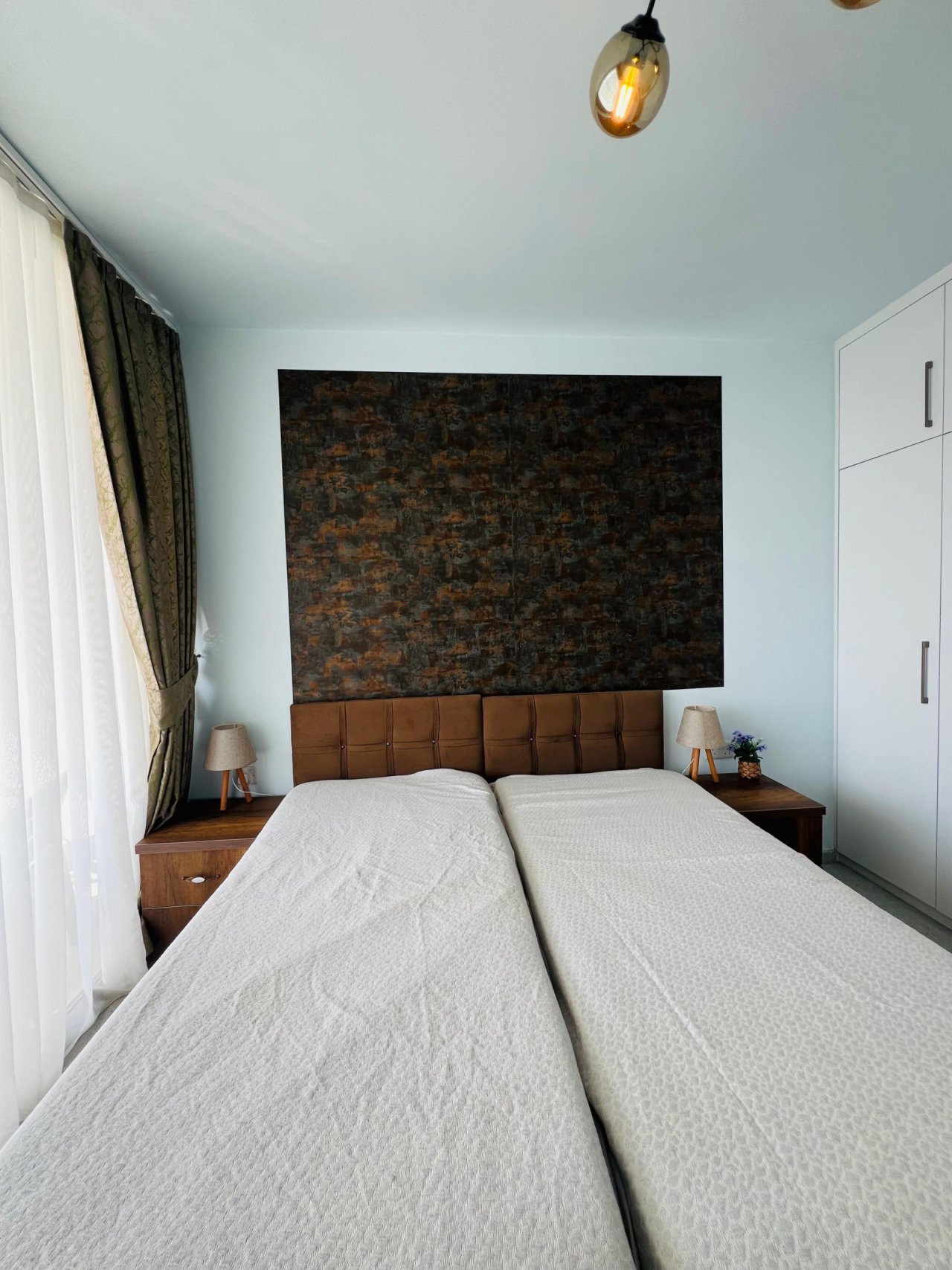 Das Apartment verfügt über ein helles Wohnzimmer mit offener Küche, ein komfortables Schlafzimmer mit Einbauschränken, ein modernes Badezimmer und einen privaten Balkon oder eine Terrasse – ideal, um die frische Luft und die ruhige Umgebung zu genießen.