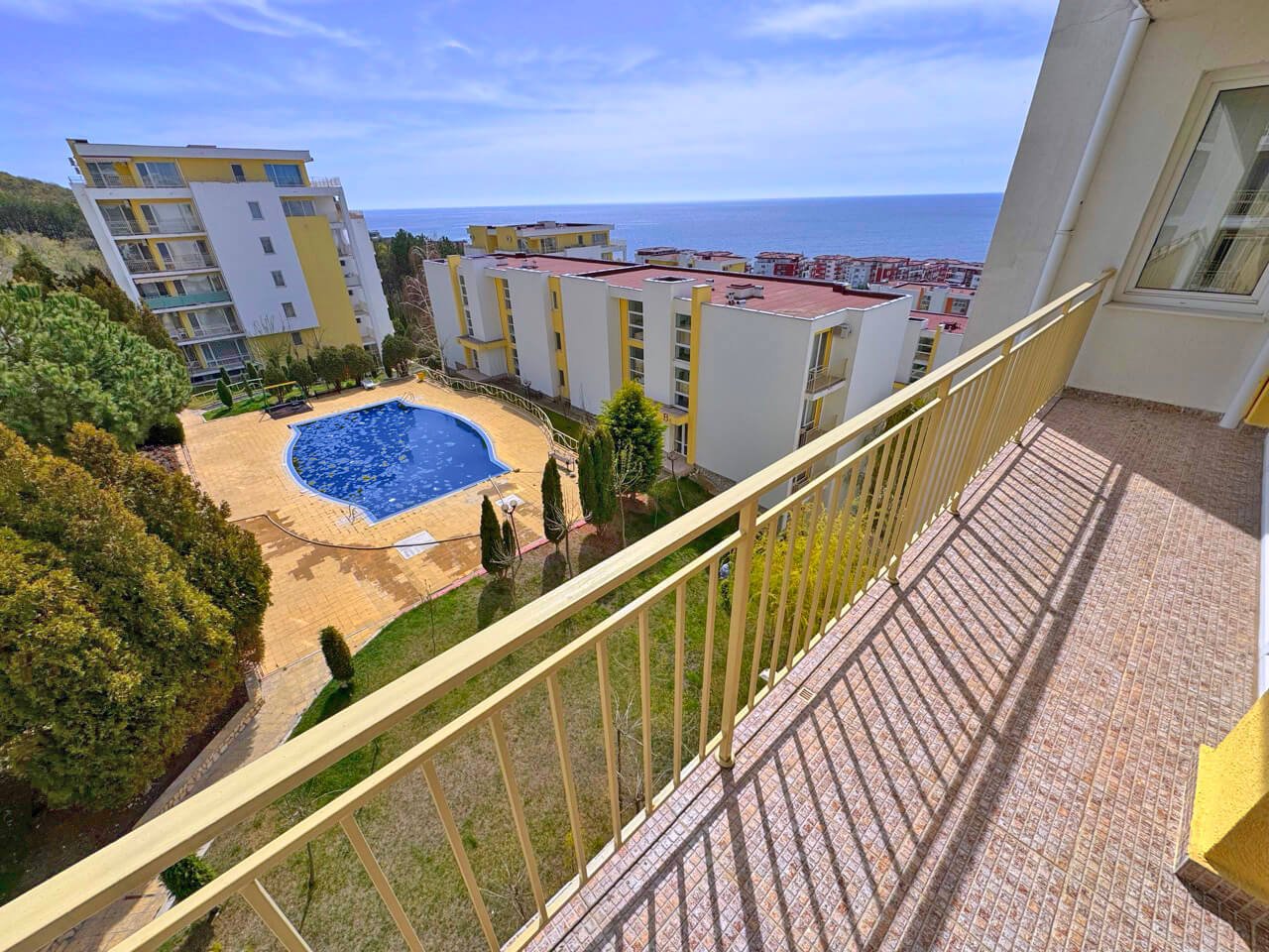 Diese attraktive Zweizimmerwohnung mit herrlichem Meerblick befindet sich im gepflegten Ferienkomplex Crown Fort Club in Sveti Vlas. Die Anlage liegt in ruhiger, grüner Umgebung zwischen Bergen und Meer und bietet ideale Voraussetzungen sowohl für den Eigenbedarf als auch als Investitionsobjekt.
