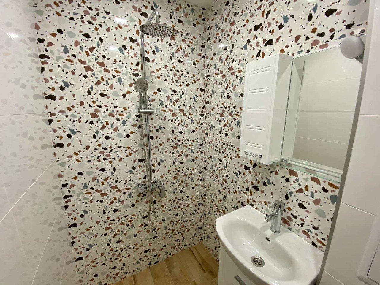 Two-room apartment in the Troshevo district, very close to Dobri Chintulov Primary School. The apartment is located on the 6th floor of a total of 8 in a well-maintained building with controlled access. The apartment faces east and west, has a built-up area of 60.59 m² and features the following layout: large living room of 24 m², bedroom of 13 m², kitchen of 10 m², L-shaped hallway, shared bathroom, and cellar. The living room has a private terrace. The apartment has been fully renovated and is offered as move-in ready.