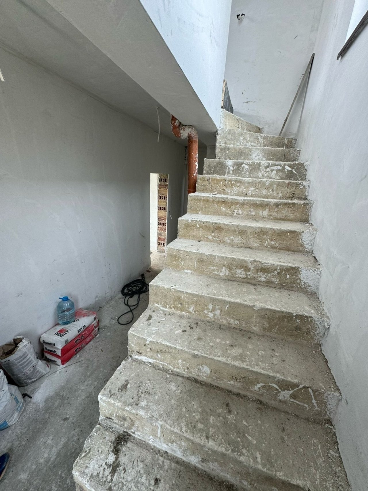 The house is finished with high-quality materials following a design project, offering spacious rooms and high ceilings of 3.20 m. It spans three floors, with both the first and second floors measuring 85 m² and the attic (with slants) covering 75 m², totaling a built-up area of 245 m². The layout includes: