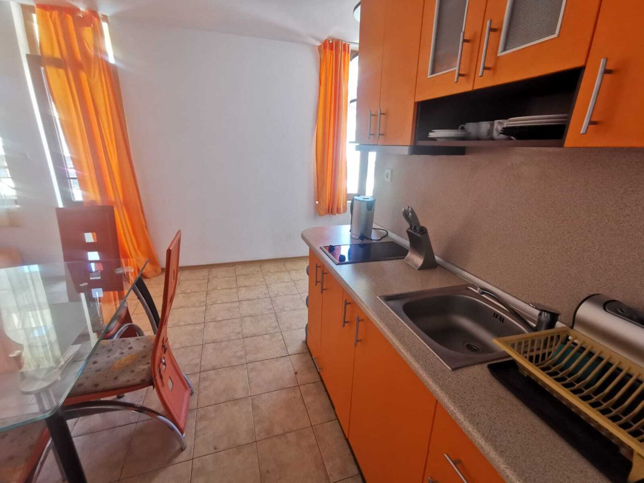 We offer you a 3-room apartment with sea view in Siyana 2 in Sveti Vlas, Bulgaria. The living room with integrated kitchen includes: