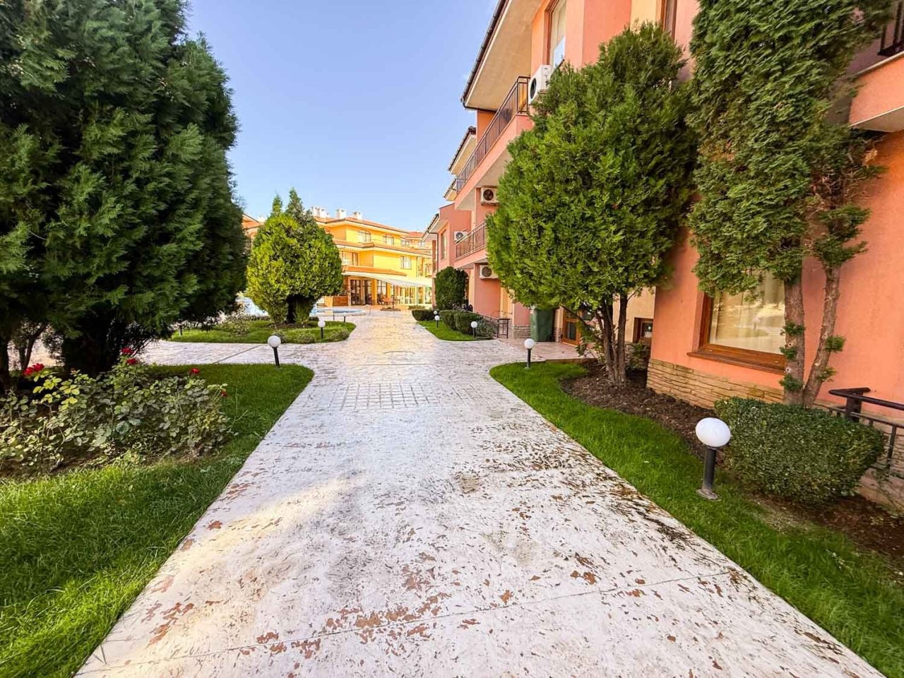 The complex is situated in a quiet and well-maintained area between the resorts of Sveti Vlas and Sunny Beach – ideal for both personal use and rental purposes.