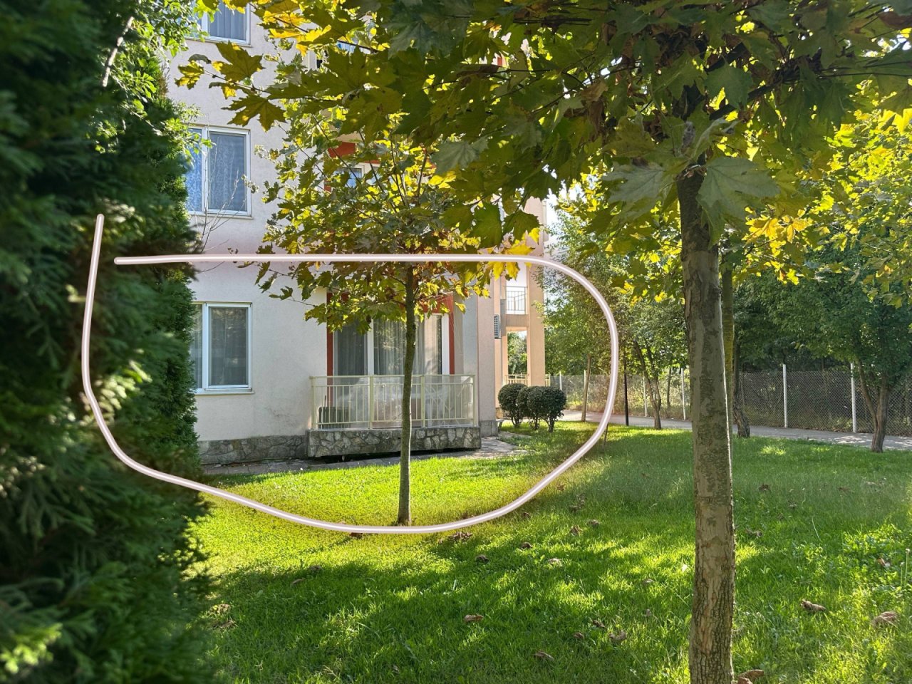 We offer an apartment at Nessebar Fort Club in Sunny Beach for sale. The apartment is located on the ground floor and consists of a living room with a kitchenette, a bedroom, a balcony, and a bathroom. The total living area is 64.13 square meters.