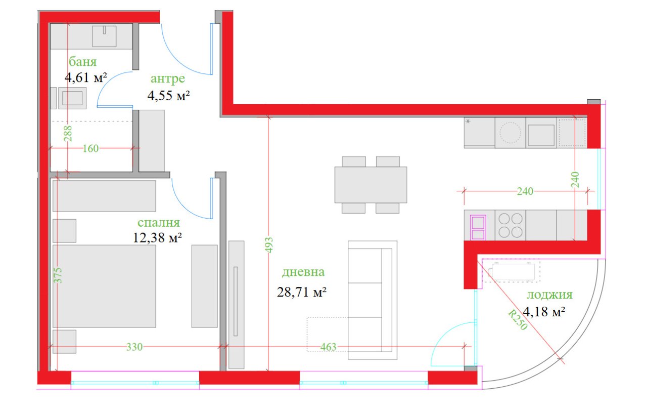 The apartment is bright, friendly, and spacious and is rented out as part of the BDS program. The amenities of the complex include: 24-hour security service and video surveillance, an all-year-round swimming pool with warm mineral water, drinking water and bathing water in each apartment, 20 hectares of green space, a football field, a playground, an outdoor fitness area, a fenced dog walking area, pavilions, as well as jogging and cycling paths.