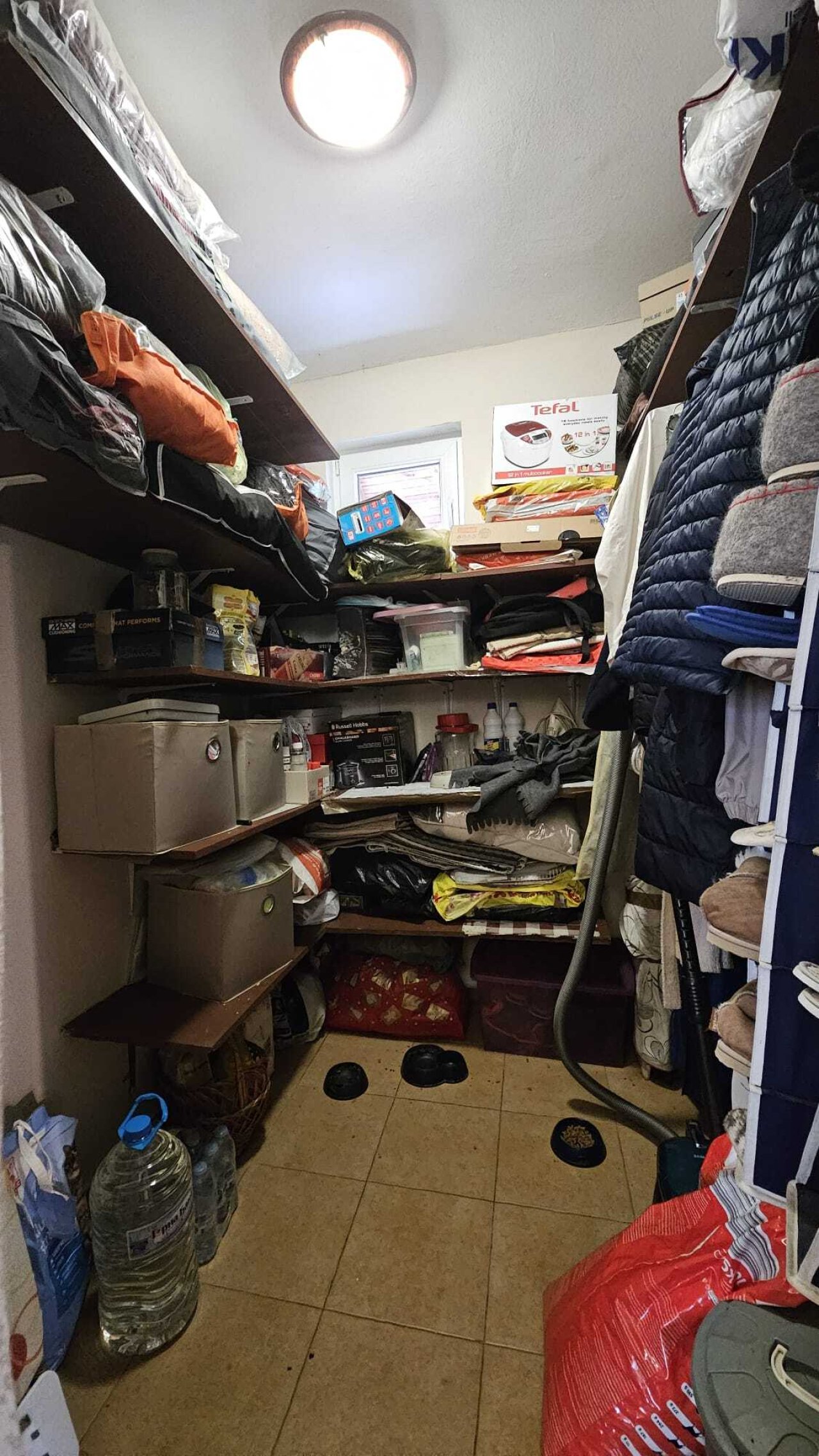 The 80 m² house is situated on a spacious 940 m² plot. The interior layout includes a cozy living room with a fireplace combined with a kitchen and dining area, two bedrooms, a bathroom, and a dressing room. There is a comfortable veranda, a dry cellar, and a garage with storage space.