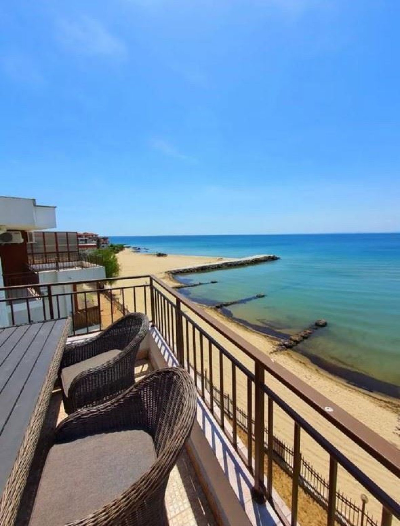 In the Messambria Fort complex, located directly by the sea in the holiday resort of Elenite, there is a spacious and bright 3-room apartment with 113 m² for sale. The apartment is fully furnished with high-quality and comfortable furniture and is ready for immediate move-in. Its biggest advantage is the large terrace with direct views of the sea and the green area of the complex – perfect for outdoor relaxation. Messambria Fort is a modern complex right by the sea, situated between Elenite and Sveti Vlas. It is known for its extensive green areas, well-developed infrastructure, and excellent service.