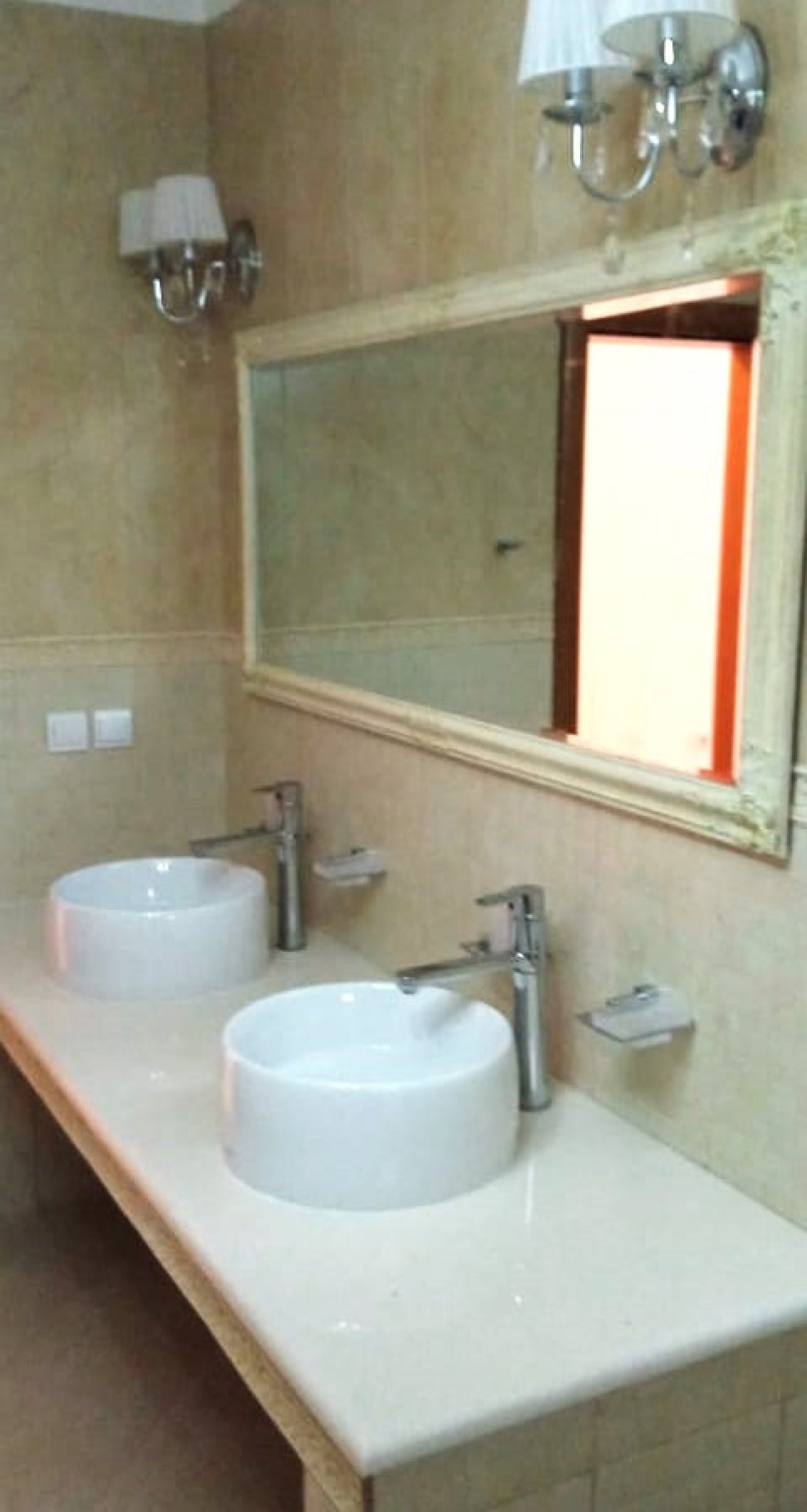 On the ground floor of 102 m² you will find a spacious entrance hall, a living room with a fireplace that creates a pleasant atmosphere, a dining room and a fully equipped kitchen. There are also three bedrooms and a modern bathroom. On the first floor you will enjoy another spacious living room, two bedrooms and another bathroom. For added comfort, underfloor heating has been installed in the bathrooms to provide warmth even during the colder seasons.