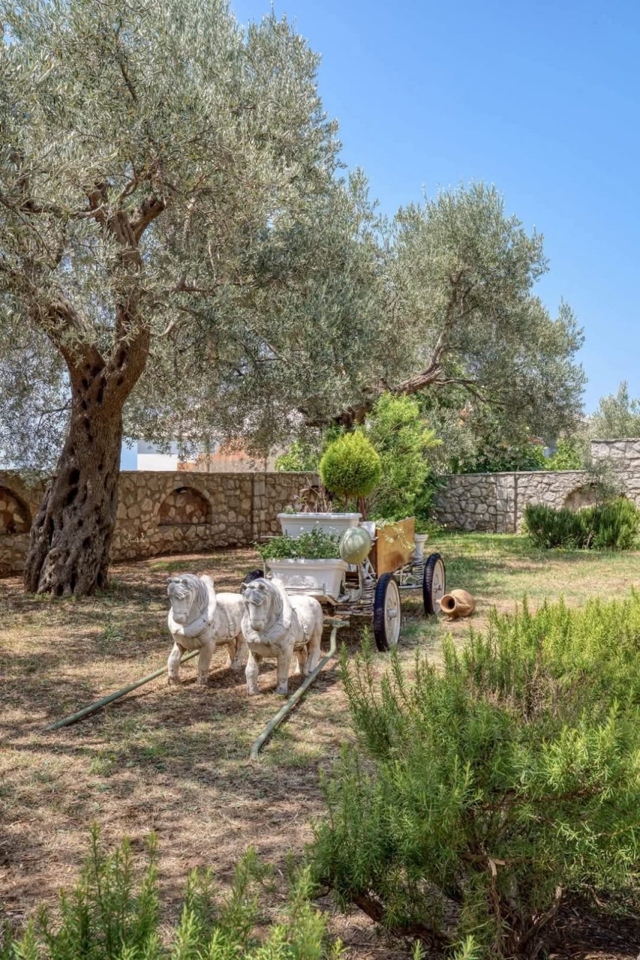 The exterior is carefully landscaped and planted with an abundance of olive trees and other Mediterranean greenery, which creates the feeling of a private paradise. There is a beautiful swimming pool with a relaxation area for sitting and relaxing.