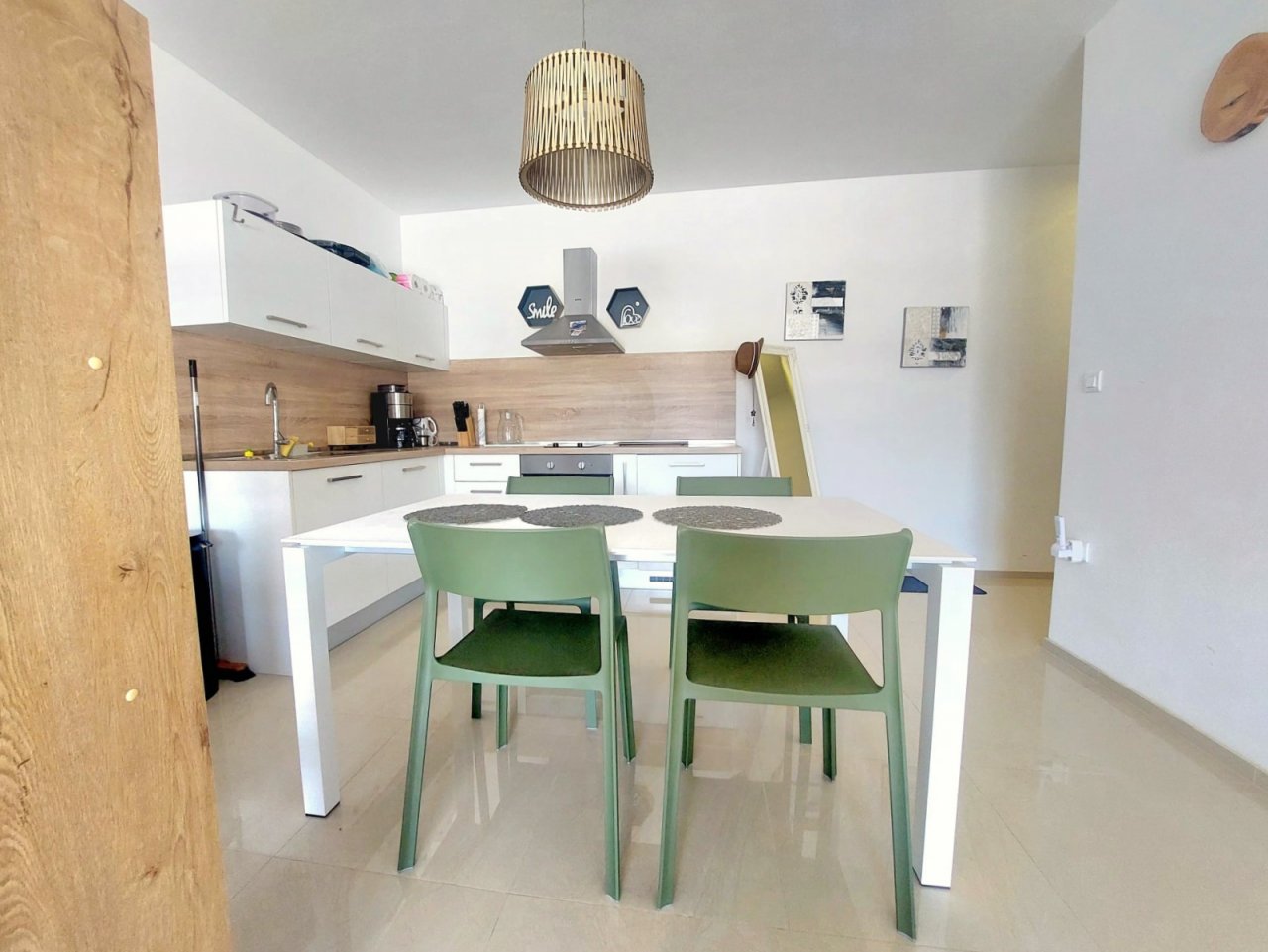 The apartment is located on the first floor and offers a well-thought-out layout. The entrance hall leads to an airy living area connected to a modernly equipped kitchen and dining room. The bedroom is spacious enough and provides a peaceful environment for relaxation. The elegant bathroom is designed in a timeless style and meets the demands for comfortable everyday use. The dominant feature of the apartment is a spacious balcony, which offers a pleasant place for morning coffee and evening sitting in a typical Mediterranean atmosphere.