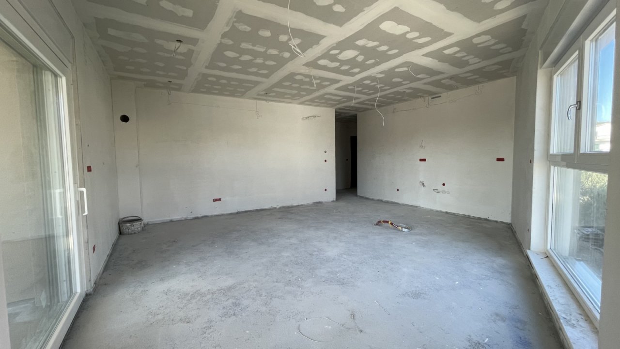 The standard of equipment corresponds to the premium category. The property offers an insulated facade, security entrance door, high-quality Gealan S 8000 windows, 225 cm high interior doors, first-class Marazzi ceramic tiles, bathrooms with Nord shower enclosures, Hansgrohe faucets, wall-mounted toilets and Grohe concealed systems. Comfort is enhanced by electric underfloor heating in the living area and bathroom, LG Inverter or Gree air conditioning in each room, electric blinds, insect screens, glass railings on the terrace and complete preparation for TV and internet. The apartment includes a parking space of 12.50 m² in the courtyard of the house.