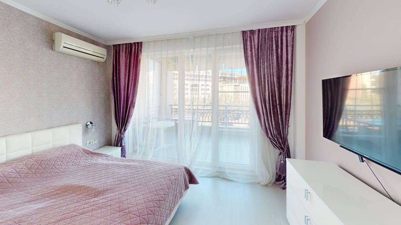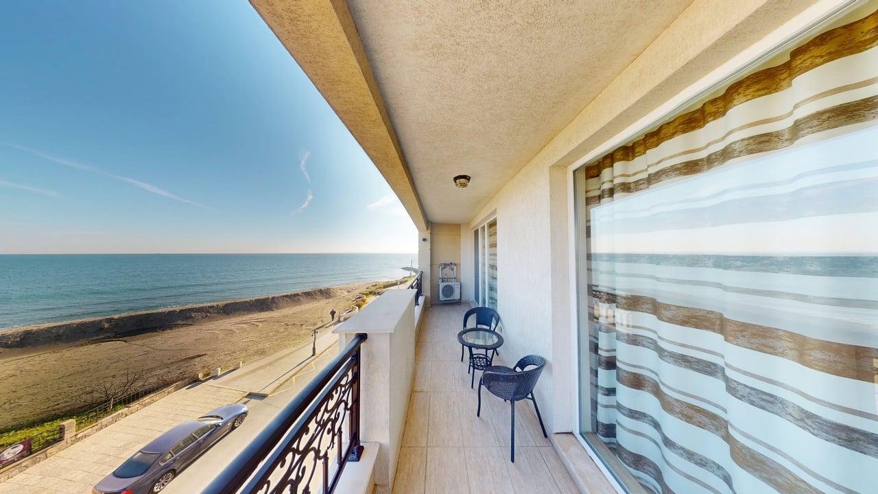 We offer you a spacious and comfortable 2-room apartment with direct sea views in the exclusive Penelope Palace complex in the southern part of Pomorie on Bulgaria's Black Sea coast.