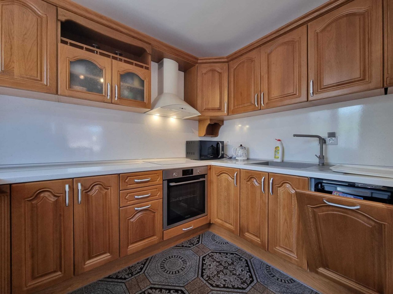 La casa si trova ai piedi della montagna, con un panorama incantevole. La superficie della casa è di 162 m², senza cantina. Al piano terra ci sono: un ingresso, un soggiorno con camino elettrico, una cucina, una sala da pranzo con accesso a una grande terrazza, una camera da letto e un bagno con doccia. Al secondo piano: un corridoio, 2 camere da letto, di cui una dotata di cabina armadio e terrazza, e un bagno con doccia. Nella cantina si trova una caldaia e una nuova caldaia. La casa è in ottime condizioni, arredata con mobili nuovi, elettrodomestici e climatizzatori ed è completamente pronta per un soggiorno confortevole! Ogni stanza è dotata di radiatore. Internet, televisione, sistema di sicurezza e videosorveglianza sono installati. L'acqua e l'elettricità sono centralizzati.