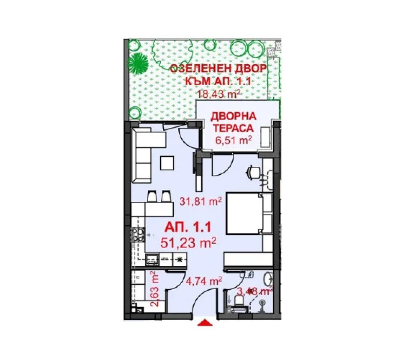 - Terrazza di 6,51 m² e cortile allestito di 18,43 m², adatto per un'area relax.