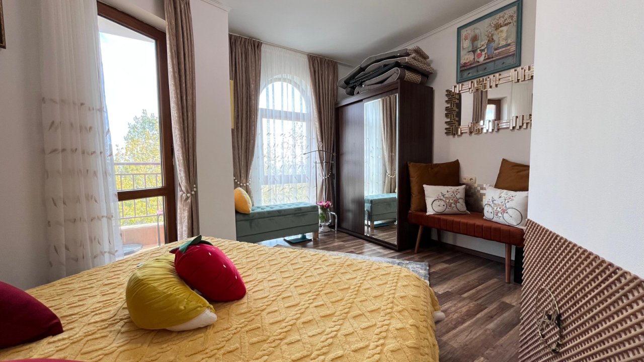 Questo accogliente appartamento di due locali con una superficie totale di 60 m² si trova al quinto piano del rinomato complesso residenziale Golden Beach, a pochi passi dalla prima linea della spiaggia della popolare località turistica di Sunny Beach.