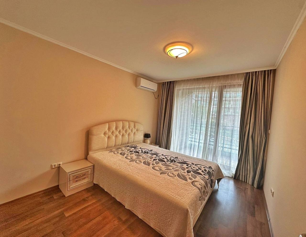 In vendita un confortevole bilocale di 62 m² al primo piano del popolare complesso Rose Gardens a Pomorie, Bulgaria. L'appartamento è completamente arredato, si trova in prima fila sul mare e offre una splendida vista sulla piscina. Ideale per vacanze o per affitto.