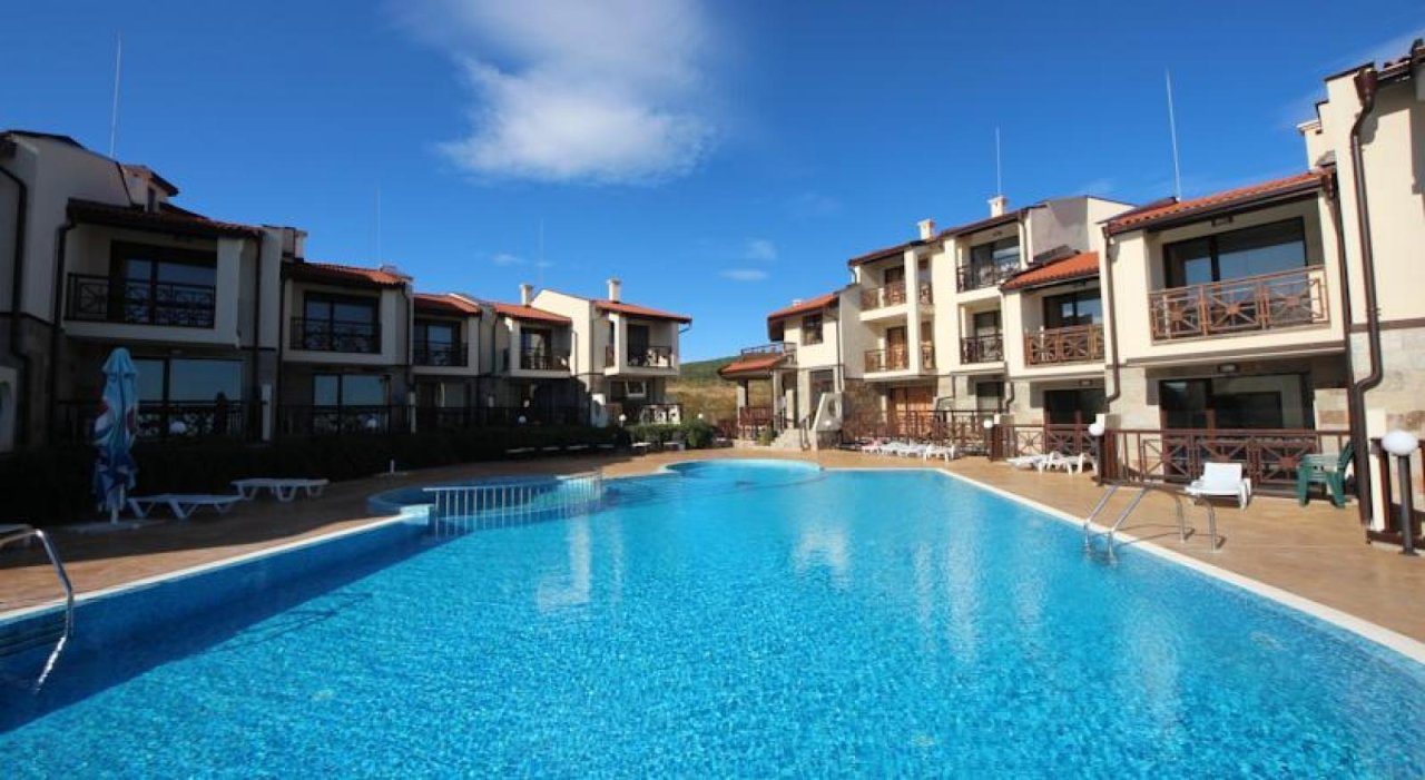 Offriamo una spaziosa villetta a schiera in vendita, situata in una zona tranquilla e pittoresca ai piedi delle montagne, a pochi chilometri dal mare e dalla rinomata località turistica di Sunny Beach.