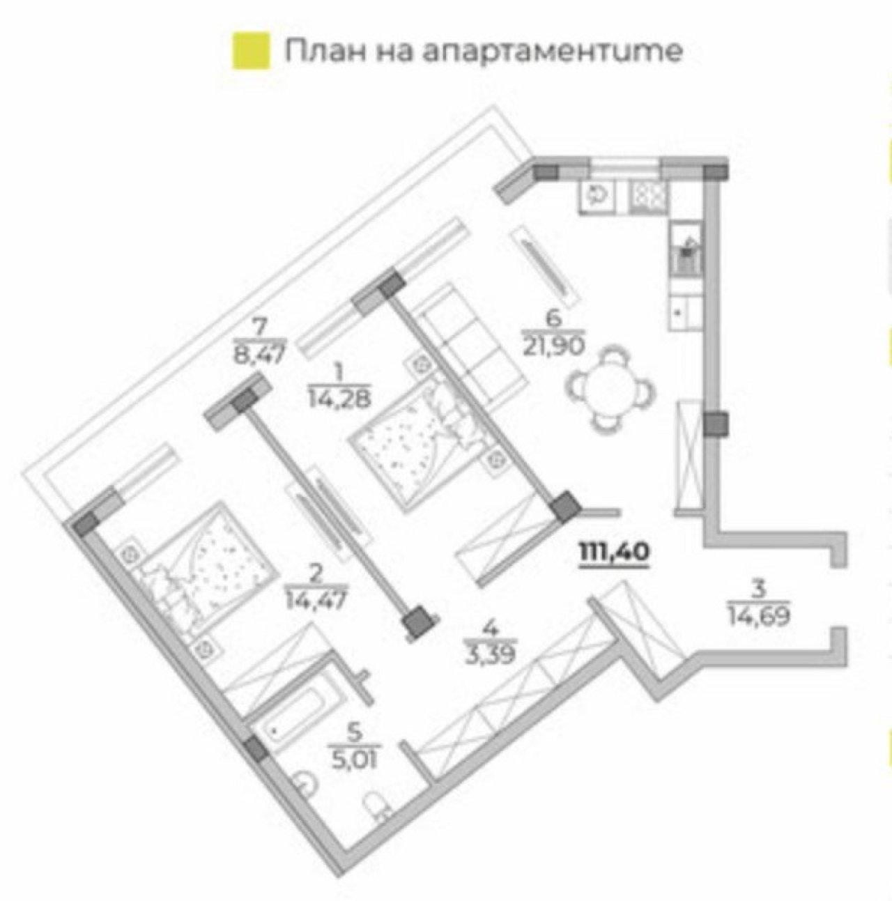 Superficie totale: 111 m², che offre spazio e comfort per una famiglia o per vivere insieme ad amici.