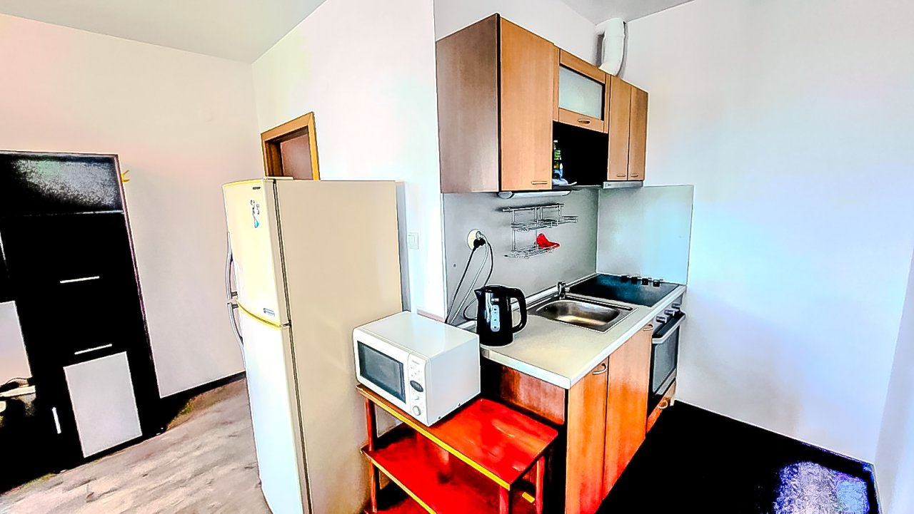 Składa się z jasnego salonu z aneksem kuchennym, dwóch sypialni, łazienki oraz przestronnego balkonu. Mieszkanie jest w pełni umeblowane i klimatyzowane, idealne zarówno do własnego użytku, jak i do wynajmu w sezonie letnim.