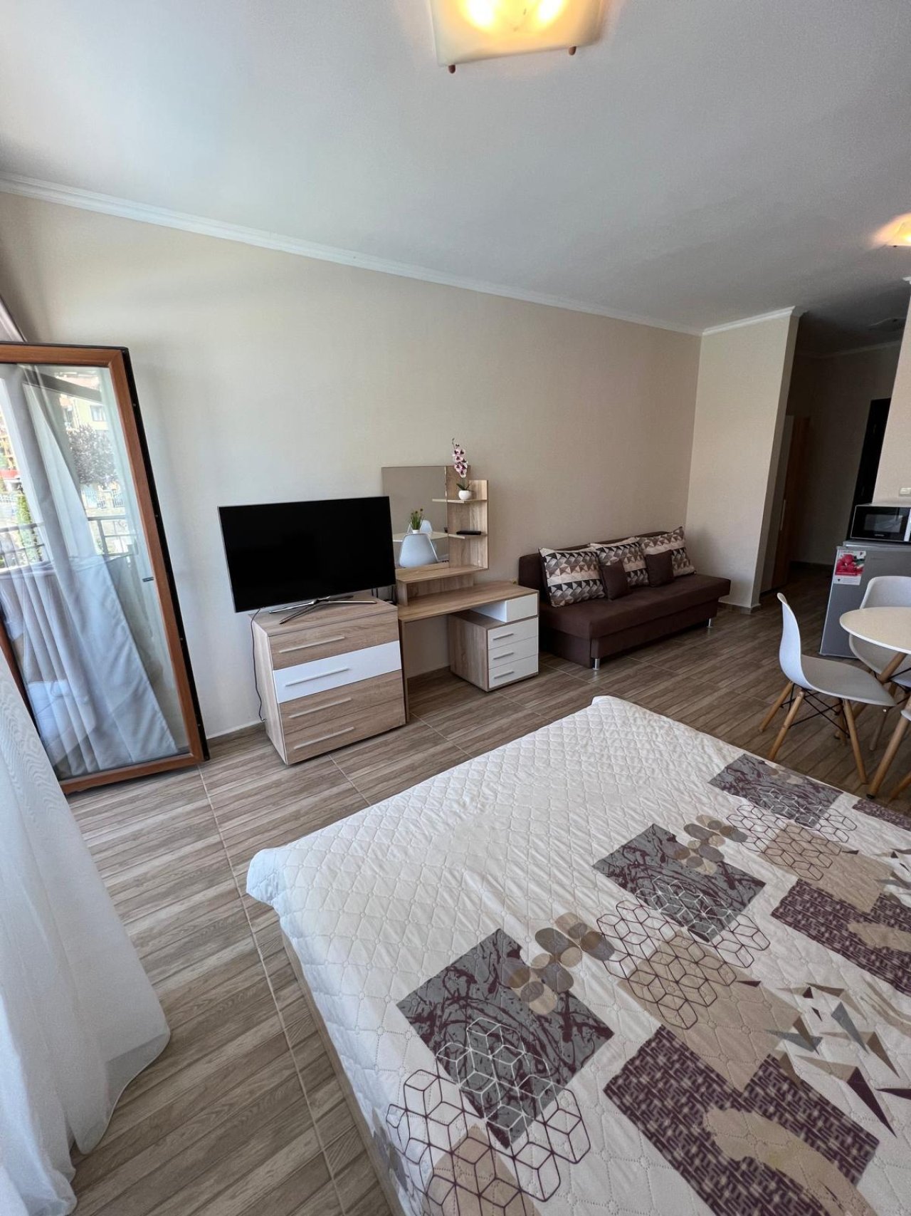 Na sprzedaż komfortowe studio w kompleksie mieszkalnym „Sun Wave“, położonym na południowej części kurortu Sveti Vlas — zaledwie 150 metrów od plaży i 15 minut pieszo od mariny Marina Dinevi. Okolica nadaje się zarówno na letni wypoczynek, jak i do całorocznego zamieszkania. W bezpośrednim sąsiedztwie znajdują się sklepy, kawiarnie, przystanki autobusowe, czysta plaża oraz promenada nadmorska. Kompleks jest zadbany, z całodobową ochroną i doskonałą infrastrukturą.