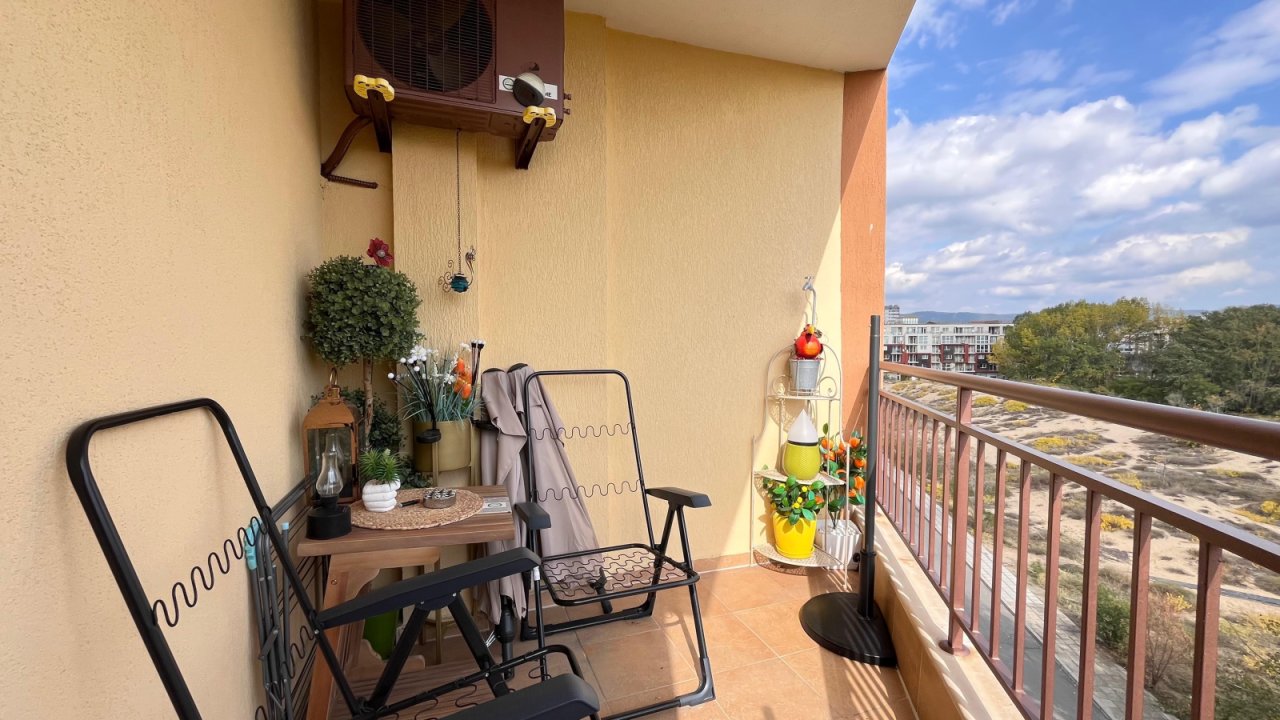 Ten przytulny dwupokojowy apartament o łącznej powierzchni 60 m² znajduje się na 5. piętrze pożądanej osiedla Golden Beach, zaledwie kilka kroków od pierwszej linii brzegowej popularnego kurortu Sunny Beach.