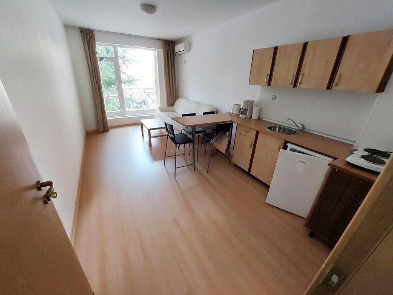 To przytulne studio o powierzchni 32 m² znajduje się na drugim piętrze kompleksu mieszkaniowego Sunny Day 6 przy Słonecznym Brzegu i oferuje piękny widok na teren osiedla oraz miasto. Mieszkanie jest w pełni umeblowane i doskonałe zarówno do własnego użytku, jak i pod wynajem. Kompleks dysponuje zadbanymi wspólnotowymi terenami, kilkoma basenami, zielonymi przestrzeniami, możliwościami uprawiania sportów oraz parkingami. Dzięki spokojnej lokalizacji i dobrej infrastrukturze studio stanowi atrakcyjną okazję inwestycyjną w popularnym regionie wakacyjnym.