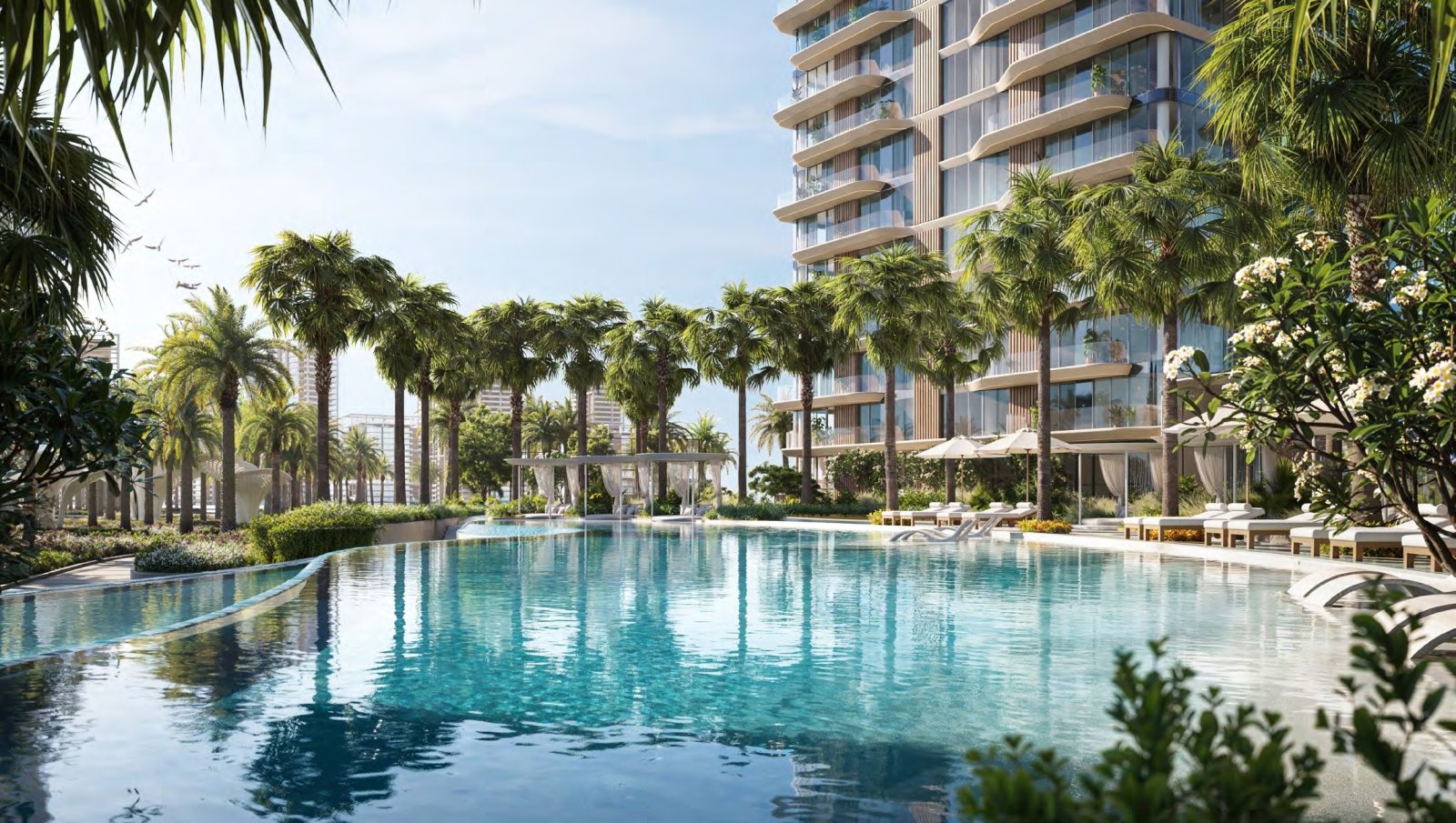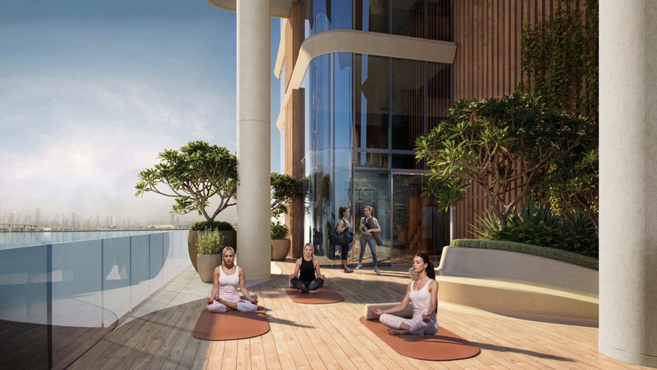 „Wzdłuż brzegu Dubai Design wyłania się wizja nad wodą w trzech skulpturalnych ruchach – zespół łączący miasto z wodą. Zielone ogrody miejskie tworzą tętniące życiem enklawy wypoczynku, wprowadzając światło, zieleń i świeże powietrze w serce wież.”