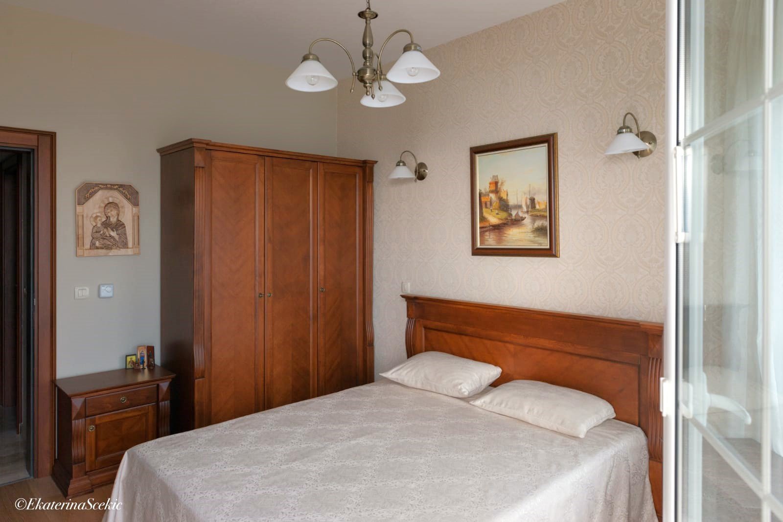 Na drugim piętrze znajdują się dwie sypialnie, gabinet, garderoba, dwie łazienki i duży taras. Podłogi w pokojach wykonane są z wysokiej jakości parkietu dębowego z wbudowanym systemem ogrzewania i chłodzenia.