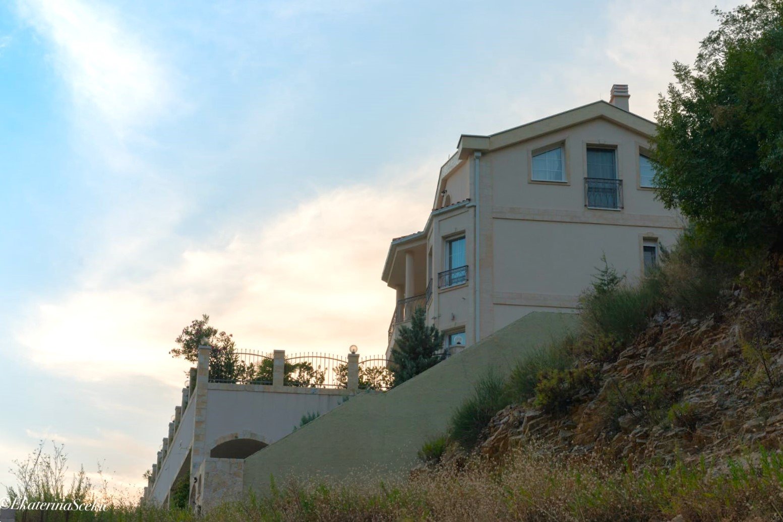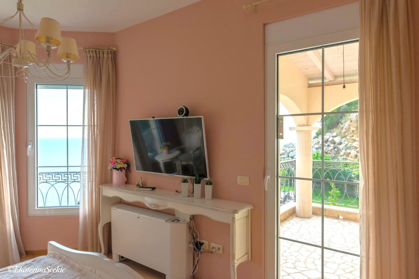 Położenie poniżej głównej drogi zapewnia spokój, prywatność i otwarte widoki na morze i pasma górskie, które nie zmieniają się o każdej porze roku.
